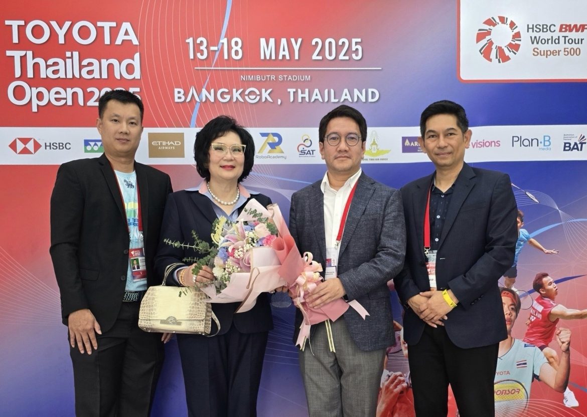 คุณพีระพงศ์ เอี่ยมลำเนา ประธานเจ้าหน้าที่บริหาร และคุณปัลลพ เขียวสุทธิ ผู้ช่วยประธานเจ้าหน้าที่ด้านพัฒนาธุรกิจ บริษัท กรังด์ปรีซ์ อินเตอร์เนชั่นแนลจำกัด (มหาชน) พร้อมด้วยเรือเอก บุญศักดิ์ พลสนะ ในฐานะคณะกรรมการจัดการแข่งขันแบดมินตันชิงแชมป์โลกอาวุโส รายการ Amazing Thailand-Pattaya BWF World Senior Championships 2025 ร่วมแสดงความยินดีกับคุณหญิงปัทมา ลีสวัสดิ์ตระกูล กรรมการคณะกรรมการโอลิมปิกสากล หรือ ไอโอซีเมมเบอร์ และนายกสมาคมกีฬาแบดมินตันแห่งประเทศไทยฯ ในโอกาสได้รับการแต่งตั้งให้ดำรงตำแหน่งประธานสหพันธ์แบดมินตันโลก หรือ BWF คนใหม่ พร้อมร่วมชมการแข่งขันแบดมินตัน TOYOTA Thailand Open 2025. HSBC BWF World Tour Super 500 ณ อาคารนิมิตรบุตร สนามกีฬาแห่งชาติ เมื่อวันที่ 18 พฤษภาคม 2568 ที่ผ่านมา