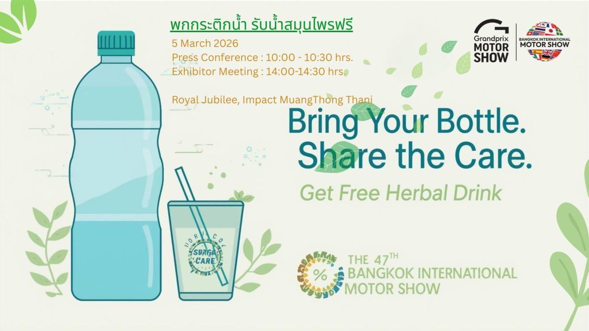 บริษัท กรังด์ปรีซ์ อินเตอร์เนชั่นแนล จำกัด (มหาชน) ในฐานะผู้นำการจัดงาน “บางกอก อินเตอร์เนชั่นแนล มอเตอร์โชว์ ครั้งที่ 47” ประกาศเดินหน้าพันธกิจด้านสิ่งแวดล้อมอย่างต่อเนื่อง เป็นปีที่ 2 กับโครงการ “พกกระติกน้ำ รับน้ำสมุนไพรฟรี” หลังได้รับผลตอบรับอย่างดีเยี่ยมในปีที่ผ่านมา เพื่อรณรงค์ลดขยะพลาสติกและสร้างวัฒนธรรมการบริโภคที่ยั่งยืนภายใต้กรอบแนวคิด ESG (Environmental, Social, and Governance) ในงานแถลงข่าว และประชุมผู้เข้าร่วมออกงาน (Exhibitor Meeting)ยังคงมุ่งเน้นสร้างการมีส่วนร่วมในการรณรงค์ลดขยะ โดยส่งเสริมให้สื่อมวลชน ผู้เข้าร่วมออกงาน คณะทำงาน พกพากระติกน้ำหรือภาชนะส่วนตัวเพื่อลดการใช้บรรจุภัณฑ์แบบใช้ครั้งเดียวทิ้ง (Single-use Plastic) มาเติมเครื่องดื่มน้ำสมุนไพรเพื่อสุขภาพฟรี ณ จุดบริการบริเวณหน้าห้อง แถลงข่าว ในวันที่ 5 มีนาคม 2569 ณ ห้องรอยัล จูบิลี่ อิมแพ็ค เมืองทองธานี