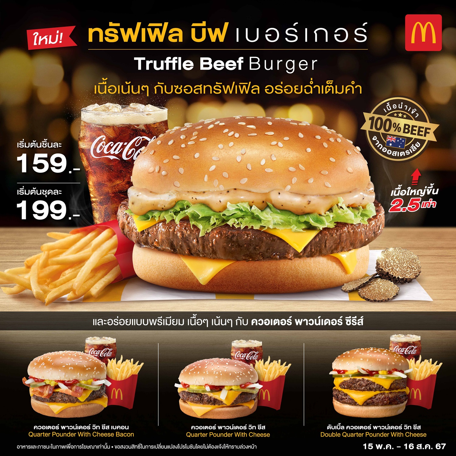เลือกอร่อยเมนูเด็ด โดนใจ‘ทรัฟเฟิล บีฟ เบอร์เกอร์’ และ ‘เคอร์ลี่ ฟรายส์ ได้แล้วตั้งแต่วันนี้ถึง 16 สิงหาคม 2567 ที่ร้านแมคโดนัลด์ทุกสาขาที่ร่วมรายการ, บริการ ไดร์ฟ ทรู (Drive Thru) และแมคดิลิเวอรีทั้ง 3 ช่องทาง โทร.1711, เว็บไซต์ www.mcdonalds.co.th และแอปพลิเคชันของแมคโดนัลด์ ดูรายละเอียดเพิ่มเติมได้ที่ Facebook.com/McThai