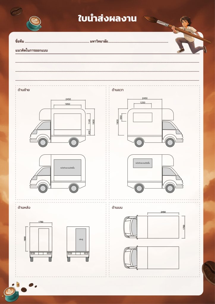 - ส่งผลงานออกแบบในรูปแบบไฟล์ดิจิทัล (Adobe Photoshop, Illustrator ฯลฯ) ความละเอียด 300dpi