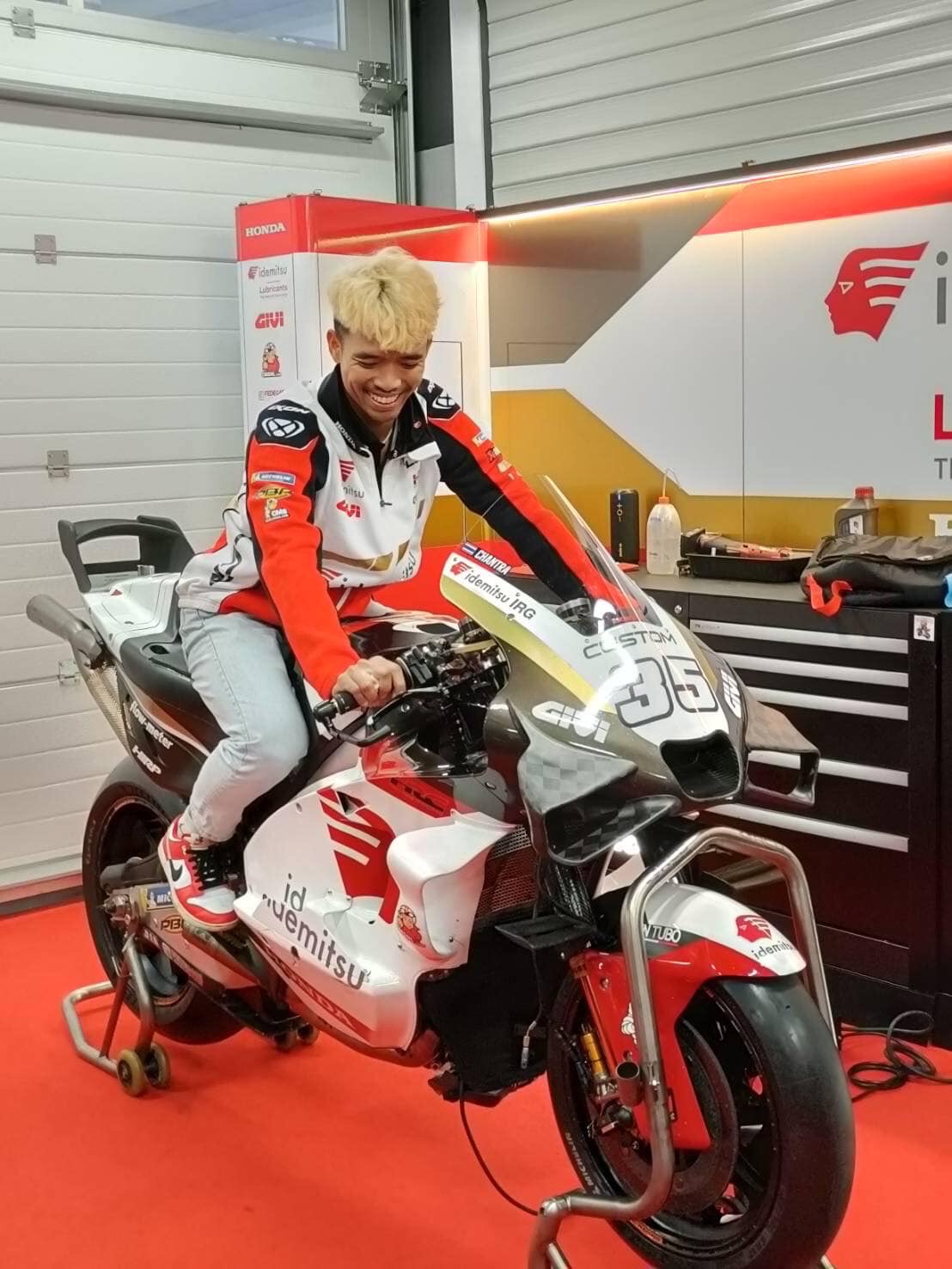 โดย “ก้อง-สมเกียรติ” นักบิดไทยเจ้าของหมายเลข 35 ลงบิดรถแข่ง RC213V ของตนเองในช่วงแรกของการทดสอบ เพื่อเรียนรู้และสร้างความคุ้นเคยกับระบบต่างๆ ของตัวรถ และเจ้าตัวก็แสดงออกถึงความสุขสุดๆ กับฝันที่เป็นจริงในการแข่งขันรุ่น “พรีเมียร์คลาส”
