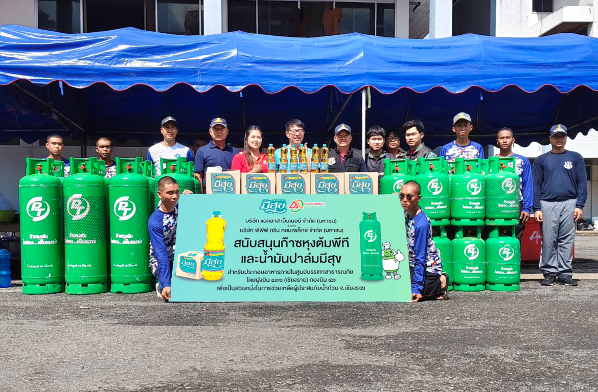 บริษัท แอตลาส เอ็นเนอยี จำกัด (มหาชน) ผู้ค้าก๊าซปิโตรเลียมเหลว ตามมาตรา 7 ภายใต้แบรนด์ ก๊าซหุงต้มพีที ร่วมกับ บริษัท พีพีพี กรีน คอมเพล็กซ์ จำกัด (มหาชน) ผู้ผลิตและจำหน่ายน้ำมันปาล์มมีสุข ร่วมสนับสนุนก๊าซหุงต้มพีที ขนาด 48 กิโลกรัม จำนวน 10 ถัง และ ขนาด 15 กิโลกรัม จำนวน 15 ถัง พร้อมน้ำมันปาล์มมีสุข จำนวน 20 ลัง เพื่อใช้ประกอบอาหาร ณ ศูนย์บรรเทาสาธารณภัยและศูนย์รับบริจาค ฝูงบิน ๔๑๖ (เชียงราย) กองบิน ๔๑ จังหวัดเชียงราย เพื่อช่วยเหลือประชาชนที่ได้รับผลกระทบจากอุทกภัยในพื้นที่ต่างๆ เมื่อเร็วๆ นี้