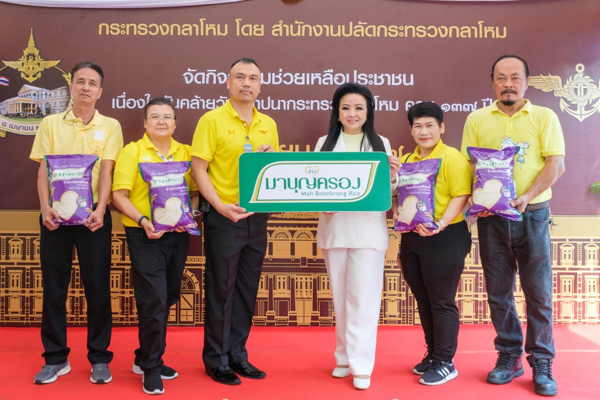 นางปรียานุช นันทโชติ (ที่ 4 จากซ้าย) ผู้อำนวยการอาวุโสฝ่ายการเงิน บริษัท พี อาร์ จี คอร์ปอเรชั่น จำกัด (มหาชน) ผู้บริหารกลุ่มธุรกิจในเครือข้าวมาบุญครอง ร่วมกับสำนักงานกิจการพลเรือน สำนักนโยบายและแผนกลาโหม กระทรวงกลาโหม ลงพื้นที่มอบข้าวมาบุญครอง กว่า 1.25 ตัน พร้อมถุงยังชีพ ช่วยเหลือประชาชนกลุ่มเปราะบาง ภายในชุมชนสุคันธาราม เขตดุสิต โดยได้รับเกียรติจาก พ.อ.ธีรศักดิ์ กฤษณะเศรณี (ที่ 3 จากซ้าย) รองผู้อำนวยการสำนักกิจการพลเรือน สำนักนโยบายและแผนกลาโหม กระทรวงกลาโหม เป็นผู้แทนในการรับมอบผลิตภัณฑ์ พร้อมเข้าเยี่ยมผู้สูงวัย และกลุ่มเปราะบาง ที่อยู่ภายในชุมชนฯ เพื่อมอบข้าวสาร และมอบกำลังใจในการดำเนินชีวิต ณ ชุมชนสุคันธาราม กรุงเทพฯ
