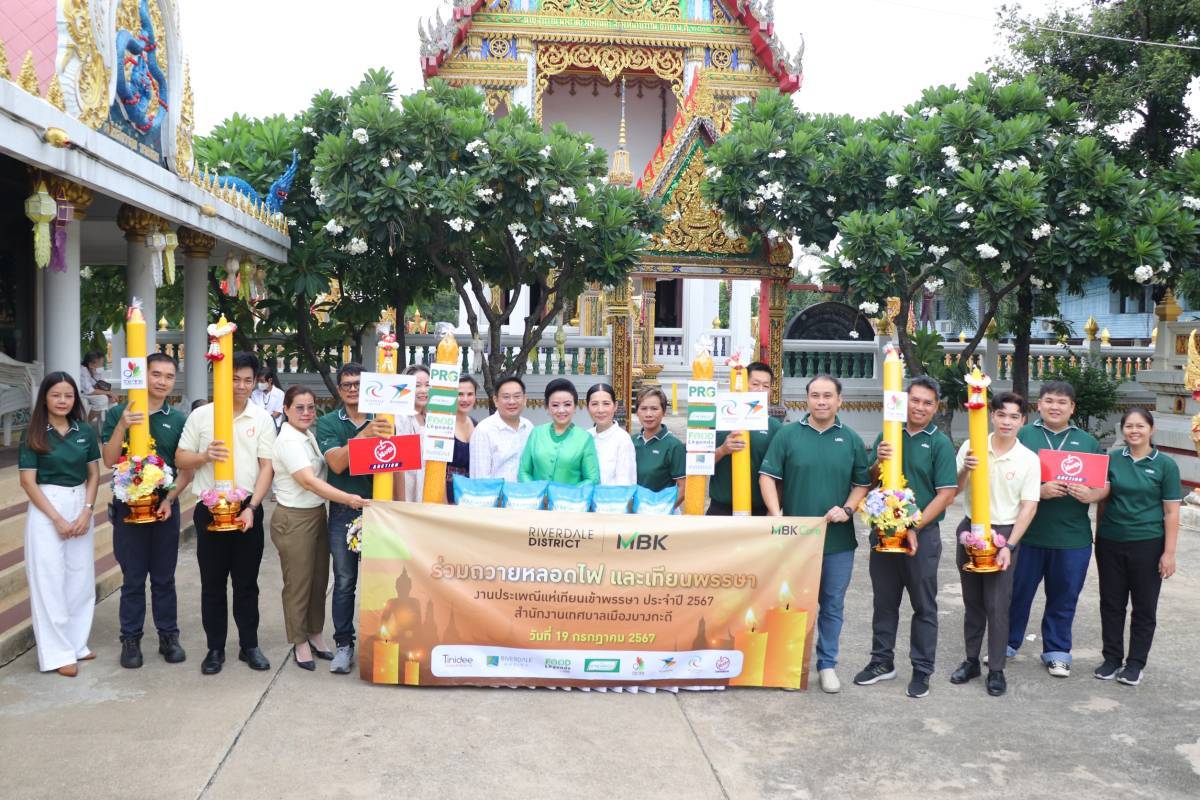 คณะผู้บริหารกลุ่มธุรกิจในเครือเอ็ม บี เค และในโครงการ Riverdale District นำโดย นายจิรชาญ คัมภิรานนท์ ผู้ช่วยกรรมการผู้จัดการใหญ่สายการตลาด บริษัท พี อาร์ จี คอร์ปอเรชั่น จำกัด (มหาชน) (ที่ 8 จากซ้าย) พร้อมด้วย นางสาววราภรณ์ ตติปาณิเทพ ผู้จัดการทั่วไป บริษัท เดอะไนน์ ติวานนท์ จำกัด (ที่ 9 จากซ้าย) ผู้บริหารพนักงานธุรกิจในเครือเอ็ม บี เค และประชาชนชาวบางกะดี ร่วมงานขบวนประเพณีแห่เทียนเข้าพรรษาประจำปี 2567 พร้อมถวายหลอดไฟ ข้าวสารมาบุญครอง และเทียนพรรษา ณ วัดบางกะดี เมื่อเร็ว ๆ นี้