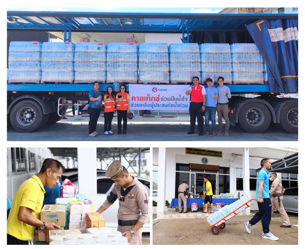 ในรายละเอียดของความช่วยเหลือดังกล่าว บริษัทฯ ได้ส่งมอบบัตรเติมน้ำมันคาลเท็กซ์ สตาร์แคช ซึ่งเป็นบัตรใช้แทนเงินสดสำหรับใช้บริการเติมน้ำมันชนิดใดก็ได้ภายในสถานีบริการน้ำมันคาลเท็กซ์ที่ร่วมรายการทั่วประเทศ ให้แก่หน่วยงานผู้ปฏิบัติการภาคสนาม อาทิ มูลนิธิองค์กรทำดี มูลนิธิป่อเต็กตึ๊ง มูลนิธิร่วมกตัญญู โครงการช่อง 8 ปันน้ำใจ และ ทีมกันจอมพลัง ช่วยสู้ รวมทั้งสิ้น 5 หน่วยงาน หน่วยงานละ 100,000 บาท รวมมูลค่าทั้งสิ้น 500,000 บาท เพื่อสนับสนุนการปฏิบัติภารกิจของเจ้าหน้าที่กู้ภัย อาสาสมัคร รวมถึงผู้นำในชุมชนในพื้นที่ ให้สามารถดำเนินการช่วยเหลือผู้ประสบอุทกภัยได้อย่างเต็มที่ ช่วยเสริมศักยภาพเรื่องการเดินทางหรือการขนส่งสิ่งของจำเป็นไปยังพื้นที่ที่ประสบภัย ซึ่งเป็นส่วนสำคัญในการส่งมอบความช่วยเหลือได้อย่างทันท่วงที นอกจากนี้ บริษัทฯ ยังได้สนับสนุนผลิตภัณฑ์น้ำดื่ม ให้แก่ สำนักงานป้องกันและบรรเทาสาธารณภัยจังหวัดเชียงราย และกรมกิจการพลเรือนทหารเรือ ไปก่อนหน้านี้ รวมมูลค่าทั้งสิ้นกว่า 100,000 บาท เพื่อให้ความช่วยเหลือผู้ประสบอุทกภัยจากเหตุการณ์ดังกล่าวในจังหวัดทางภาคเหนือและภาคอีสาน อีกด้วย
