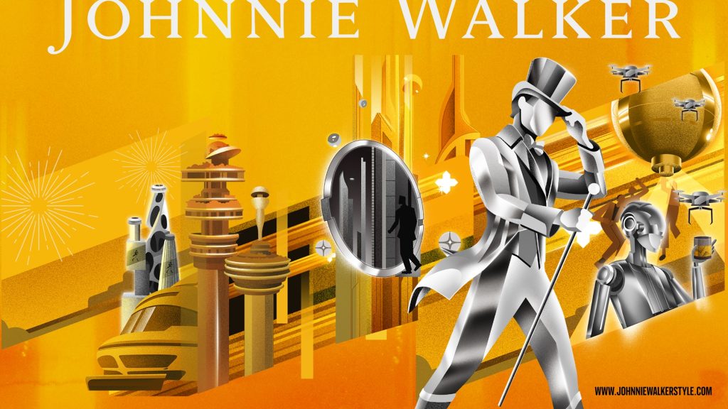 เรื่องราวการเดินทางในครั้งนี้ ได้รับการถ่ายทอดผ่านลายเส้นการออกแบบที่ปรากฏบนกล่องบรรจุ Johnnie Walker 100th  Year Limited Edition ประกอบไปด้วยชิ้นโฆษณาที่เป็นที่จดจำในอดีต เช่น โฆษณา Johnnie Walker Red Label ที่นำเสนอภาพอนุเสาวรีย์ประชาธิปไตยที่มีหิมะปกคลุม สะท้อนแนวคิด  “เป็นไปไม่ได้ ทำไม่ได้ หรือไม่ได้ทำ” และเรื่องราวของหุ่นยนต์ปัญญาประดิษฐ์ (Artificial Intelligence หรือ AI) ที่ปรากฎในโฆษณาชิ้นโดดเด่นของ จอห์นนี่ วอล์กเกอร์ รวมไปถึงการจัดปาร์ตี้สุดเอ็กซ์คลูซีฟอย่าง THE BLACKLIST และรูปศีรษะของยักษ์อันเป็นเอกลักษณ์ในงาน ‘WALK ไทยให้ไกลกว่าเดิม’ ที่ยกระดับความเป็นไทยโดยกลุ่มศิลปินทัศนศิลป์ชาวไทย (Visual Artists) และ ดนตรีไทยในมุมมองใหม่ นอกจากนี้ ดีไซน์พิเศษบนกล่องมีภาพขวดจอห์นนี่ วอล์กเกอร์ อยู่ตรงกลางของภาพเปรียบเสมือนเป็นหมุดหมายที่เชื่อมระหว่างเรื่องราวในอดีตและอนาคตบนด้านขวาของภาพ  ที่ได้รับการถ่ายทอดโดยภาพลายเส้นที่ทันสมัย ด้วยองค์ประกอบภาพที่สื่อถึงโลกแห่งอนาคต เพื่อสร้างแรงบันดาลใจให้กับผู้คนทั่วโลกในการก้าวต่อไปข้างหน้ากับแนวคิดหลักอย่าง ‘ทุกก้าวที่พาเราไปข้างหน้า คือก้าวที่มีความหมาย’