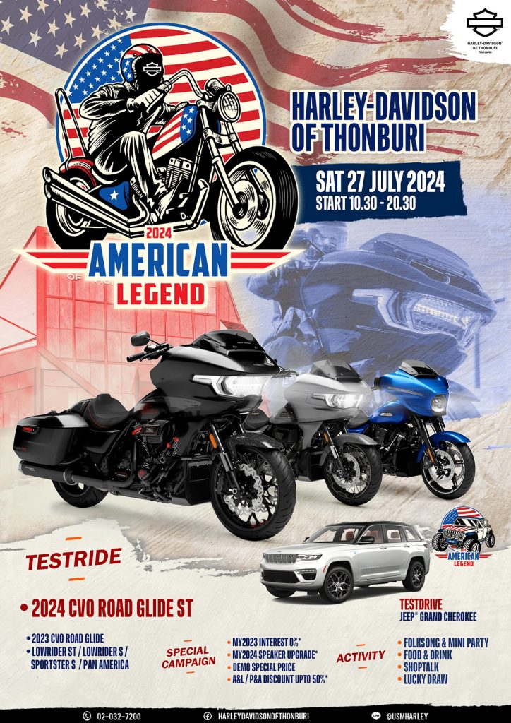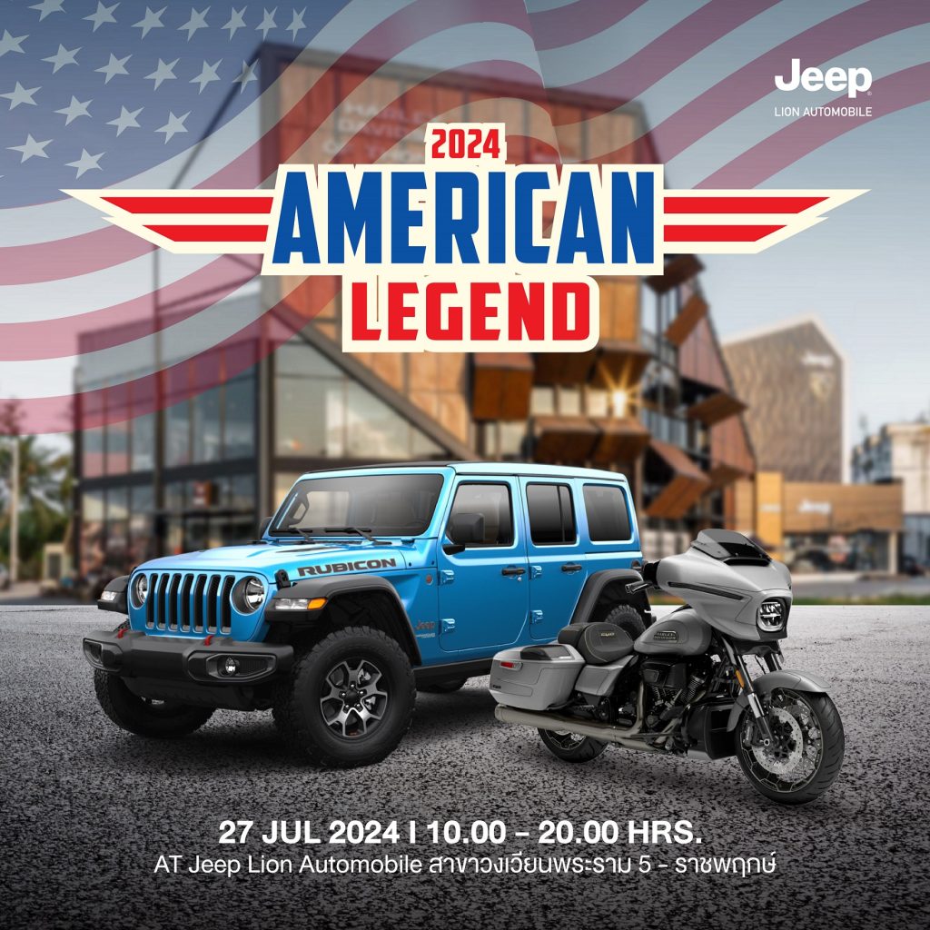 กลับมาอีกครั้งกับการรวมตัวกันของที่สุดแห่งความเป็นตำนานสัญชาติอเมริกัน จี๊ป ไลอ้อน ออโตโมบิล ผู้จำหน่ายรถยนต์ จี๊ป อย่างเป็นทางการในประเทศไทย ร่วมกับ ยูเอส มอเตอร์ไบค์ ผู้จำหน่ายมอเตอร์ไซค์ ฮาร์ลีย์-เดวิดสัน อย่างเป็นทางการ จัดงาน ‘American Legend’ สร้างปรากฏการณ์เร้าใจ เชิญชวนเปิดประสบการณ์ทดลองขับครั้งแรกในเมืองไทย กับรถยนต์ จี๊ป แกรนด์ เชอเรอกี ซัมมิท รีเซิร์ฟ โฟว์บายอี ปลั๊ก-อินไฮบริด (Jeep Grand Cherokee Summit Reserve 4xe Plug-in Hybrid), จี๊ป แรงเลอร์ รูบิคอน และมอเตอร์ไซค์ ฮาร์ลีย์-เดวิดสัน รุ่น CVO Road Glide ST ปี 2024 รวมถึงรุ่นอื่นๆ พร้อมคัดสรรข้อเสนอสุดพิเศษ จัดหนักจัดเต็ม เพื่อสายลุยโดยเฉพาะ!