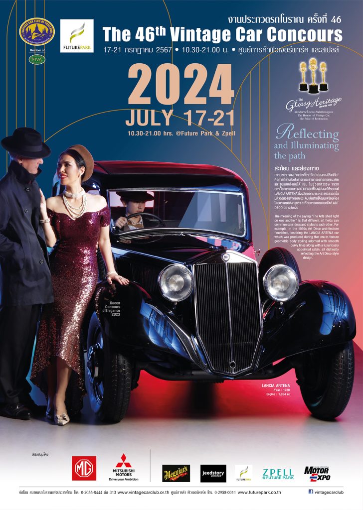 ขวัญชัย ปภัสร์พงษ์ นายกสมาคมรถโบราณแห่งประเทศไทย เปิดเผยว่า “งานประกวดรถโบราณ เป็นงานระดับประเทศที่จัดต่อเนื่องเป็นครั้งที่ 46 โดยแนวคิดของงานปีนี้คือ “สะท้อน และส่องทาง – Reflecting and llluminating the path” มาจากคำกล่าว “ศิลปะส่องทางให้แก่กัน” ซึ่งหมายความว่า ศิลปะต่างแขนงสามารถถ่ายทอดแนวคิด และรูปแบบถึงกันได้ เช่น ในช่วงทศวรรษ 1930 สถาปัตยกรรมแนว ART DECO เฟื่องฟู ส่งผลให้รถยนต์ LANCIA ARTENA ที่ผลิตออกมาช่วงนั้น ซึ่งเราเลือกใช้เป็นภาพโปสเตอร์ มีตัวถังทรงเรขาคณิต ประดับเส้นสายโค้งมน พร้อมห้องโดยสารตกแต่งหรูหรา สะท้อนการออกแบบสไตล์ ART DECO อย่างชัดเจน นอกจากนี้ รถโบราณคันอื่นๆ ก็มีการสะท้อน และส่องทางรูปแบบศิลปะในแต่ละยุคสมัยเช่นเดียวกัน”