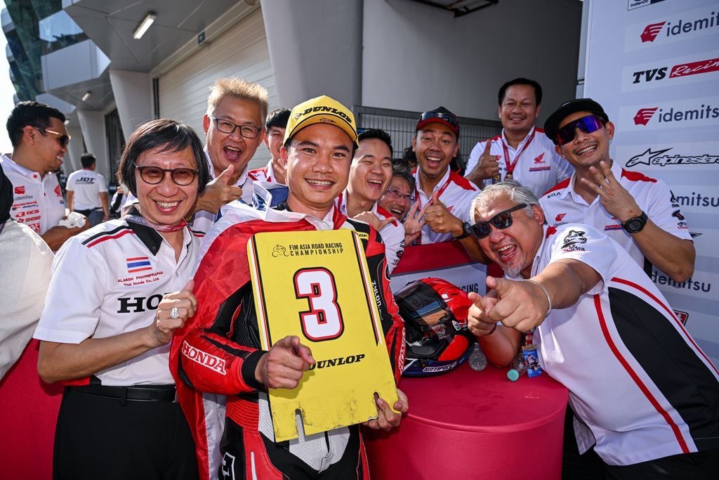 รุ่น ซูเปอร์สปอร์ต 600 ซีซี (SS600) 2 ดาวรุ่งไทย บิด Honda CBR600RR ต้องพบกับความท้าทายอย่างมากในการแข่งขันสนามนี้ จากสภาพอากาศที่เซปังและความเข้มข้นในช่วงโค้งสุดท้ายของแชมเปี้ยนชิพจากการดวลกันของนักบิดระดับท็อปของเอเชีย โดยมีบททดสอบสำคัญคือกริดสตาร์ต หลังจากที่ “มิกซ์” ธนัช ละอองปลิว หมายเลข 31 ประสบอุบัติเหตุในรอบควอลิฟาย ทำให้ต้องออกสตาร์ตจากกริดที่ 11 เริ่มต้นการแข่งขันอย่างมุ่งมั่น ขยับความเร็วแซงผ่านคู่แข่งขึ้นมาได้อย่างต่อเนื่อง โดยเป้าหมายอยู่ที่การพยายามไล่กลุ่มนำให้ทัน ซึ่งดาวรุ่งไทยแสดงออกถึงหัวใจนักสู้ บดกับคู่แข่งหัวแถวระดับเอเชียจนถึงรอบสุดท้าย ก่อนคว้าท็อป 6 ขณะที่ “ข้าวกล้อง” จักรีภัทร พฤฒิสาร หมายเลข 20 ออกสตาร์ตในกริดที่ 12 บิดเข้าเส้นชัยเป็นอันดับที่ 11 โดย “ไฮเปค” กฤษฎา ธนะโชติ หมายเลข 18 ไม่ได้ลงทำการแข่งขันในสนามนี้เนื่องจากยังไม่หายจากอาการบาดเจ็บ