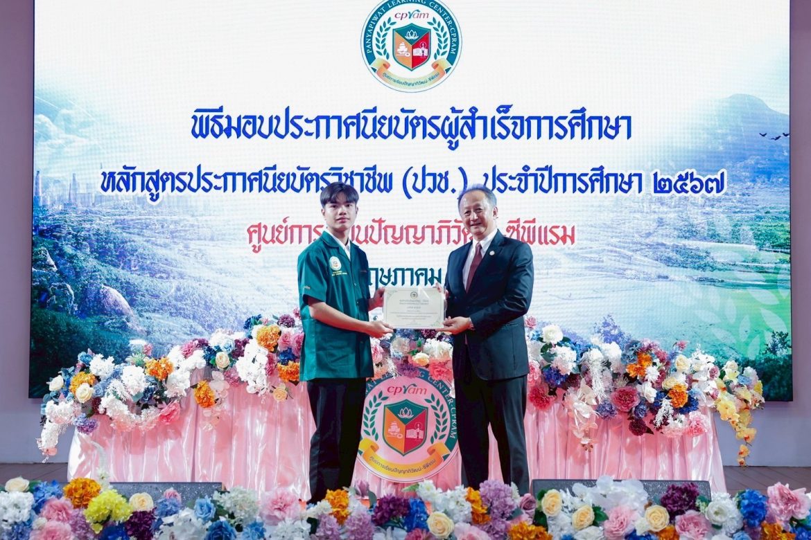 คุณวิเศษ วิศิษฏ์วิญญู กรรมการผู้จัดการ พร้อมด้วยผู้บริหาร บริษัท ซีพีแรม จำกัด ให้เกียรติเป็นประธานในพิธีมอบประกาศนียบัตรวิชาชีพ แก่ผู้สำเร็จการศึกษา ศูนย์การเรียนปัญญาภิวัฒน์ – ซีพีแรม ประจำปีการศึกษา 2567 ประกอบด้วย ประเภทวิชาพาณิชยกรรม สาขางานธุรกิจอาหารและบริการ จำนวน 21 ราย และประเภทวิชาอุตสาหกรรม สาขาเมคคาทรอนิกส์ จำนวน 15 ราย รวม 36 ราย
