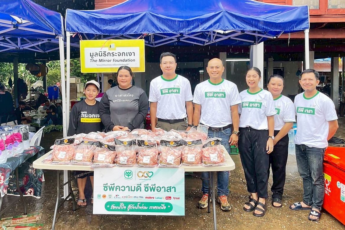 ล่าสุด ทีมซีพีอาสาและซีพีเอฟ ร่วมสนับสนุน “มูลนิธิกระจกเงา” ที่ปักหลักตั้งโรงครัวอาสา ทำอาหารเพื่อพี่น้องชาวน่าน โดยบริษัทส่งมอบเนื้อไก่สด สำหรับใช้ปรุงอาหารหลากหลายเมนู ที่กระจายไปยังชาวชุมชนในพื้นที่บ้านนาแห้ว ต.กองควาย และชาวบ้านใน ต.กองควาย อ.เมืองเมืองน่าน รวมถึงที่บ้านน้ำลัด ต.นาปัง อ.ภูเพียง นอกจากนี้ ยังส่งต่อข้าวกล่องให้กับ “สมาคมศิริกรณ์เชียงรายบรรเทาสาธารณภัย” เพื่อนำไปส่งต่อให้ผู้ประสบภัยน้ำท่วมในพื้นที่ อ.แม่สาย จ.เชียง ตลอดจน ชาวบ้านในพื้นที่แม่สายที่เข้ามารับข้าวกล่อง ณ ที่ว่าการอำเภอแม่สาย