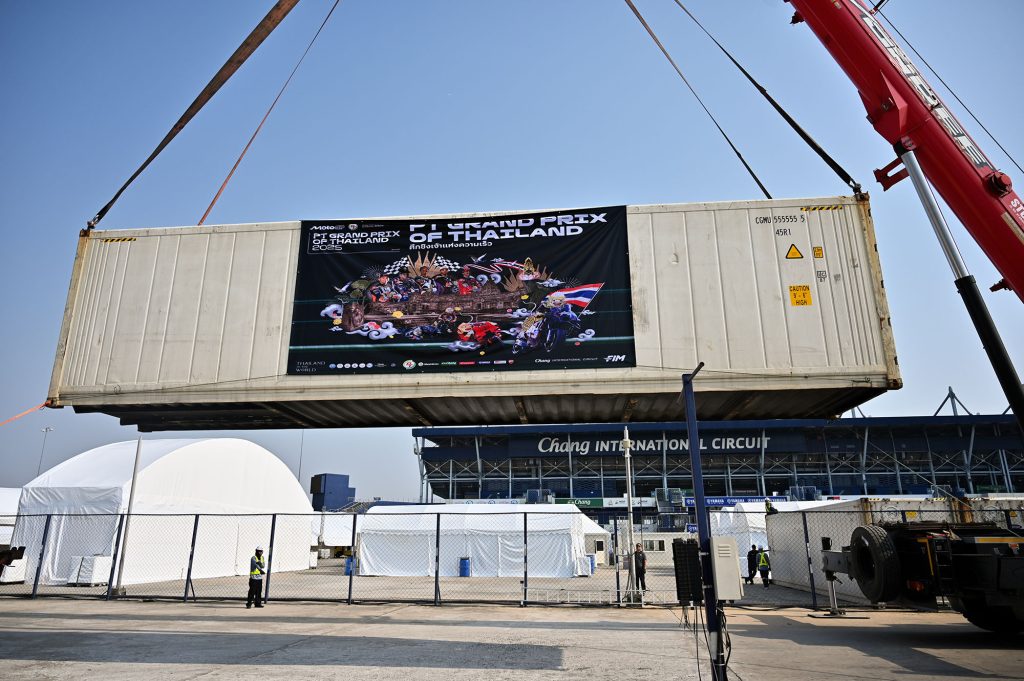 นายโชติชนก ชิดชอบ ผู้อำนวยการฝ่ายกิจกรรมต่างประเทศ สนามช้างอินเตอร์เนชั่นแนลเซอร์กิต เผิดเผยว่า ขณะนี้คณะกรรมการจัดการแข่งขันได้ประสานความร่วมมือย่างเต็มกำลังในช่วงโค้งสุดท้ายก่อนที่ทัพใหญ่ โมโตจีพี จะเดินทางเข้าสู่จังหวัดบุรีรัมย์ โดยคอนเทนเนอร์ล็อตแรกเป็นการขนส่งอุปกรณ์สำคัญสำหรับการจัดการแข่งขัน เพื่อติดตั้งล่วงหน้า รวมทั้งการติดตั้งสิ่งอำนวยความสะดวกโดยรอบ สแตนด์ผู้ชม พาวิลเลียน และบูธกิจกรรมต่างๆ