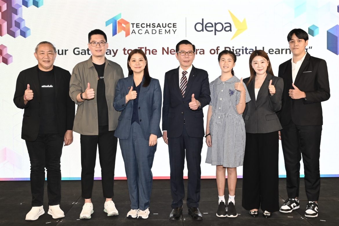 ผศ.ดร.ณัฐพล นิมมานพัชรินทร์ ผู้อำนวยการใหญ่ สำนักงานส่งเสริมเศรษฐกิจดิจทัล หรือ ดีป้า พร้อมด้วย นางสาวอรไท เลิศสุวรรณกิจ ผู้อำนวยการฝ่ายความร่วมมือทางธุรกิจ บริษัท เทคซอส มีเดีย จำกัด ร่วมเปิดตัว Techsauce Academy แหล่งรวบรวมหลักสูตรการเรียนรู้ด้านดิจิทัลที่สอดคล้องกับ Digital Skill Roadmap หรือกรอบแนวทางการพัฒนาทักษะดิจิทัลสำหรับคนไทยในทุกกลุ่มและทุกช่วงวัย โดยมี Enterprise Lab แห่งแรกของไทย หรือโปรแกรมที่เปิดโอกาสให้นักเรียน นักศึกษารับโจทย์จากบริษัทชั้นนำเพื่อพัฒนาโครงการจริง สัมผัสประสบการณ์การทำงานจริง และสร้างผลงานที่สามารถใช้เป็น Portfolio
