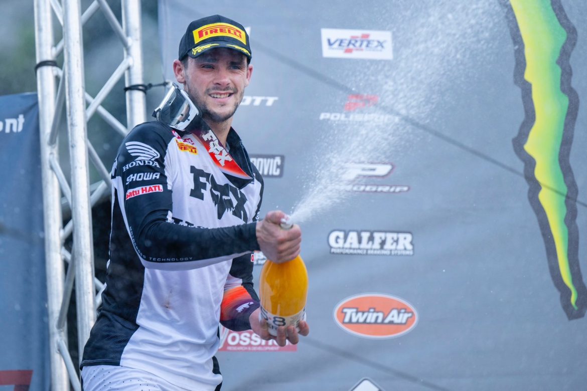 “ ทิม ไกจ์เซอร์” เริ่มต้นเดินคันเร่ง Honda CRF450R ทะยานออกมาในกลุ่มนำทันที โค้งแรกโดนคู่แข่งเบียดไปในไลน์กว้างจนหล่นไปอันดับที่ 3 แต่สามารถบิดรถแข่งคู่ใจหมายเลข 243 ขึ้นมารั้งท็อปที่ 2 ด้วยเวลาห่างจากผู้ชนะเพียง 0.374 วินาทีเท่านั้น