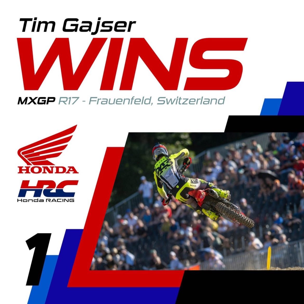 “ทิม ไกเซอร์” ยอดนักบิดจากชาวสโลวเนียและสุดยอดรถแข่งทางฝุ่น Honda CRF450R จาก Team HRC ที่ผ่านมา เหมาชัยชนะทั้ง 2 เรซ เก็บแต้ม 50 คะแนนเต็มลุ้นแชมป์สมัยที่ 6 ในโค้งสุดท้ายฤดูกาลนี้ ขณะที่ทีมเมท “รูเบน เฟอร์นานเดซ” คัมแบ็คจากอาการบาดเจ็บคว้าท็อป 9 ระเบิดผลงานสุดเหนือชั้นในการแข่งขันศึก MXGP 2024 สนามที่ 17 ที่เฟราเอนเฟลด์ ประเทศสวิตเซอร์แลนด์