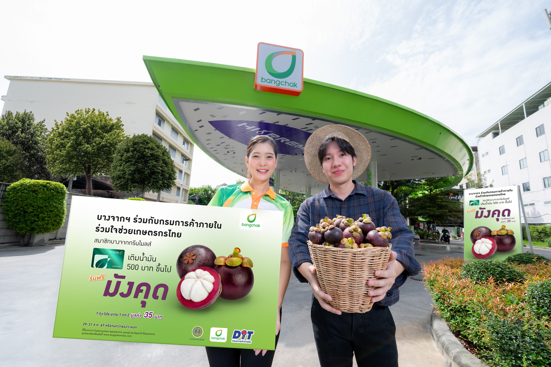 บริษัท บางจาก คอร์ปอเรชั่น จำกัด (มหาชน) ร่วมกับ กรมการค้าภายใน กระทรวงพาณิชย์ ช่วยเหลือเกษตรกรผู้ปลูกมังคุดที่กำลังออกมาตามฤดูกาลจำนวนมาก และได้รับผลกระทบจากการขาดช่องทางการกระจายสินค้า ด้วยการรับซื้อมังคุดมาสมนาคุณลูกค้า โดยสมาชิกบางจากกรีนไมลส์ เติมน้ำมันชนิดใดก็ได้ตั้งแต่ 500  บาทขึ้นไป รับฟรีมังคุดสดจากสวน 1 ถุง น้ำหนักประมาณ 1 กิโลกรัม มูลค่า 35 บาท ตั้งแต่วันที่ 29 – 31 สิงหาคม 2567 หรือจนกว่าของจะหมด  ณ สถานีบริการน้ำมันบางจากและสถานีบริการน้ำมันเอสโซ่เดิม ในเขตกรุงเทพฯ นนทบุรี ปทุมธานี และสมุทรปราการ ที่ร่วมรายการ ดูรายละเอียดได้ที่ www.bcpgreenmiles.com