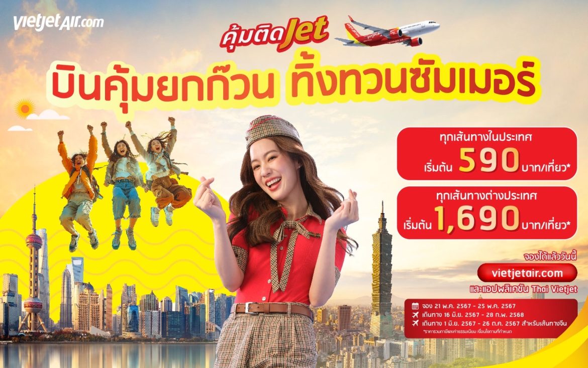 สายการบินไทยเวียตเจ็ทลดกระหน่ำ ออกโปรโมชั่น “บินคุ้มยกก๊วน ทิ้งทวนซัมเมอร์ (Summer’s Super Savers)” เสนอบัตรโดยสารราคาพิเศษ เริ่มต้นเพียง 590 บาท (ราคารวมภาษีและค่าธรรมเนียม) สำหรับเดินทางบนเครือข่ายเส้นทางบินภายในประเทศและ ราคาเริ่มต้น 1,690 บาท (ราคารวมภาษีและค่าธรรมเนียม) สำหรับเดินทางบนเครือข่ายเส้นทางบินระหว่างประเทศของไทยเวียตเจ็ท สามารถสำรองบัตรโดยสารได้ระหว่างวันที่ 21 – 25 พฤษภาคม 2567 ใช้เดินทางได้ระหว่างวันที่ 16 มิถุนายน 2567 – 28 กุมภาพันธ์ 2568 (ยกเว้นวันหยุดนักขัตฤกษ์) ที่ www.vietjetair.com