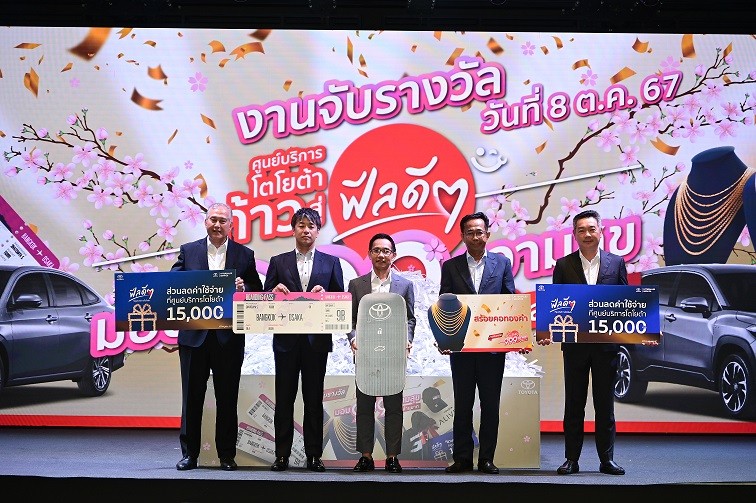 ตามที่บริษัท โตโยต้า มอเตอร์ ประเทศไทย จำกัด และผู้แทนจำหน่ายโตโยต้าทั่วประเทศ ได้เชิญชวนลูกค้าทุกท่านเข้ารับบริการที่ศูนย์บริการซ่อมทั่วไปและศูนย์บริการซ่อมตัวถังและสี ระหว่างวันที่ 1 กรกฎาคม 2567 – 31 ธันวาคม 2567 เพื่อลุ้นชิงโชครางวัลใหญ่จากกิจกรรม “ศูนย์บริการโตโยต้าก้าวสู่ฟีลดีๆมอบ 999 ความสุขกับรางวัลมูลค่ากว่า 9 ล้านบาท”