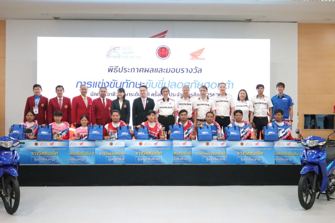 ไทยฮอนด้า ขอแสดงความยินดีกับคุณครู และนักเรียนที่ชนะจากการแข่งขันทักษะขับขี่ปลอดภัยฮอนด้าครั้งที่ 5 ประจำปีการศึกษา 2567 ที่จัดขึ้น ณ ศูนย์ฝึกขับขี่ปลอดภัยฮอนด้า กรุงเทพฯ (รามคำแหง) ในวันที่ 19 ธันวาคม 2567 ที่ผ่านมา พร้อมมอบถ้วยรางวัล และรถจักรยานยนต์ฮอนด้าจำนวน 1 คันให้กับผู้ชนะเลิศอันดับที่หนึ่งในแต่ละรุ่น ด้านรองชนะเลิศอันดับที่หนึ่งและอันดับที่สองได้รับเงินทุนการศึกษาจำนวน 13,000 บาท เพื่อเป็นกำลังใจในการพัฒนาตนเองต่อไป