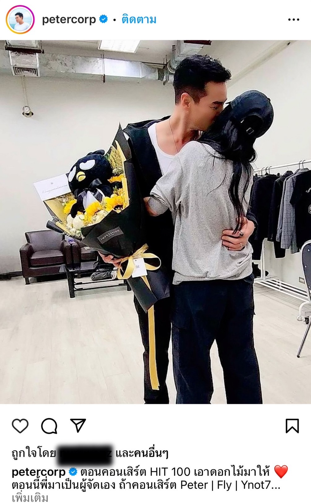 “ปีเตอร์ คอร์ป” โชว์หวานแฟนสาวหอบดอกไม้ยินดีหลังเวที