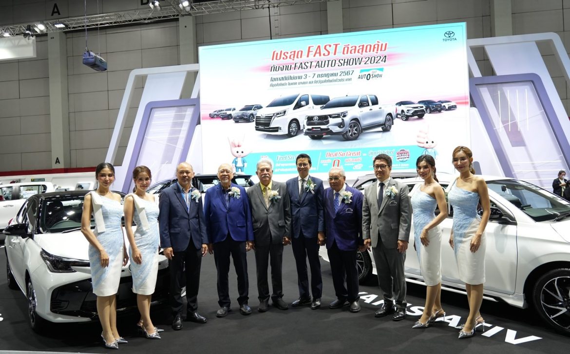 บริษัท โตโยต้า มอเตอร์ ประเทศไทย จำกัด เข้าร่วมแสดงรถในงาน FAST Auto Show Thailand 2024 นำเสนอยนตรกรรมโตโยต้าล่าสุดและรถตกแต่งพิเศษหลากหลายรุ่นพิเศษสุด! กับข้อเสนอสำหรับลูกค้าที่จองรถโตโยต้าทุกรุ่นภายในงานณฮอลล์ EH 102-104 ไบเทคบางนาระหว่างวันที่ 3-7 กรกฎาคม 2567 และที่ผู้แทนจำหน่ายโตโยต้าทั่วประเทศ