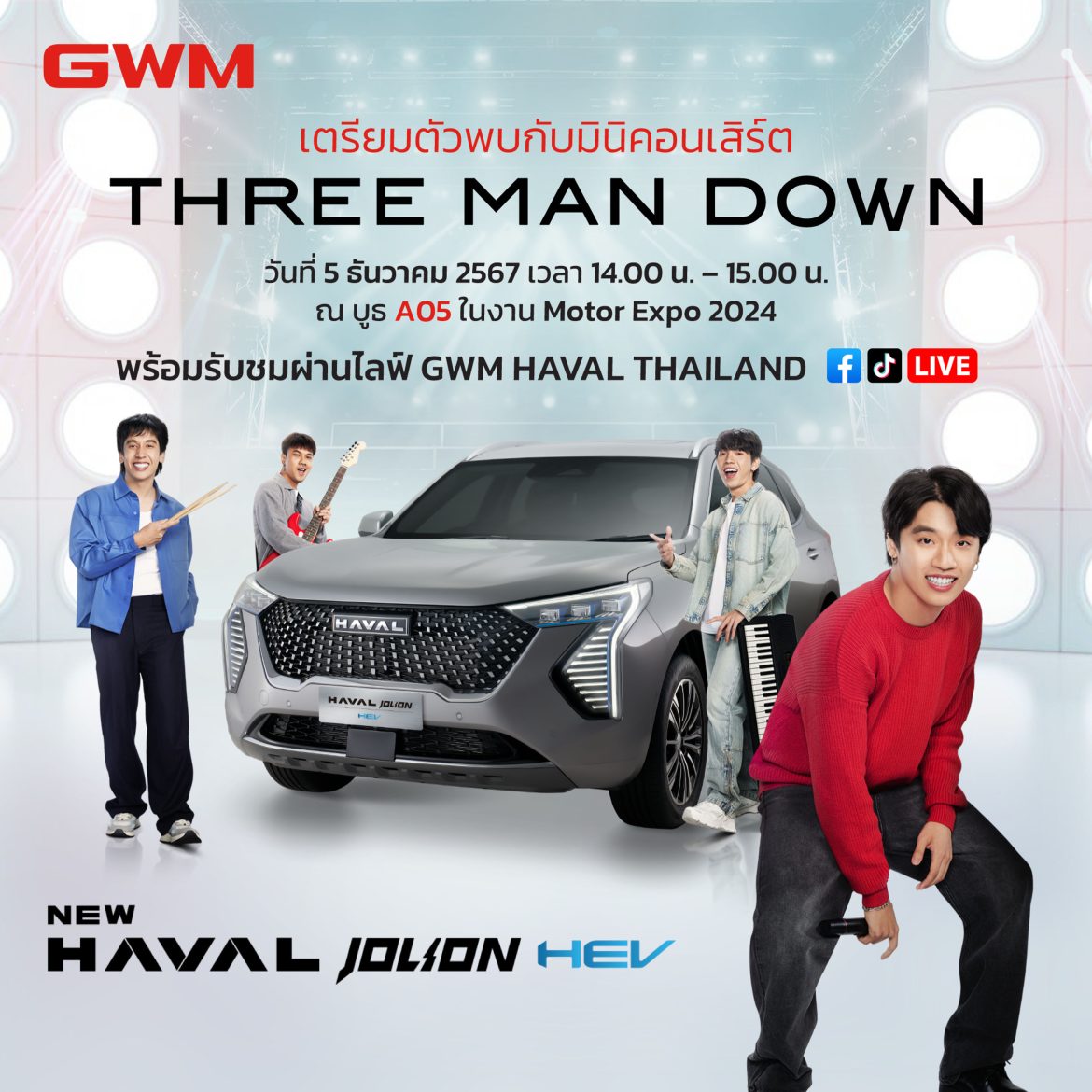 ไฮไลต์ #5: เซอร์ไพรส์พิเศษเอาใจแฟนๆ เจนซี ด้วยมินิคอนเสิร์ตจาก Three Man Down ศิลปินสุดฮอตแห่งปีและพรีเซนเตอร์เจ้าสิงโตอารมณ์ดี GWM HAVAL JOLION HEV 5 ธันวาคมนี้