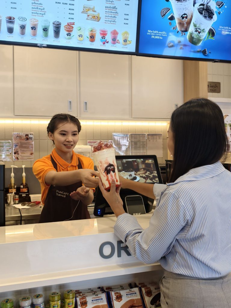 โดยสถานีรถไฟความเร็วสูงเวียงจันทน์ รองรับกลุ่มคนทำงาน กลุ่มนักท่องเที่ยว ที่ต้องการความสะดวกสบายกับอาหารและเครื่องดื่มที่อร่อยและเข้าถึงง่าย หรือสาขา 2 ที่สะหวันนะเขต ตั้งอยู่ใกล้ริมแม่น้ำโขง ใจกลางแหล่งชุมชน และสถานที่ราชการ เช่น ธนาคารการค้าต่างประเทศ และสาขาล่าสุด บ้านฮ่องแก ที่มาพร้อมคอนเซปป์ Café & Restaurant เสิร์ฟความอร่อยด้วยเมนูที่หลากหลายตั้งแต่เช้าจรดค่ำ ด้วยกลยุทธ์หลักคือการสร้าง Community Hub เปิดพื้นที่ให้ลูกค้าได้แบ่งปันทั้งความสุขและความอร่อย ตอบโจทย์ไลฟ์สไตล์คนรุ่นใหม่ด้วยห้องประชุมส่วนตัว พร้อมปลั๊กชาร์จไฟ และบริการ WiFi ฟรี