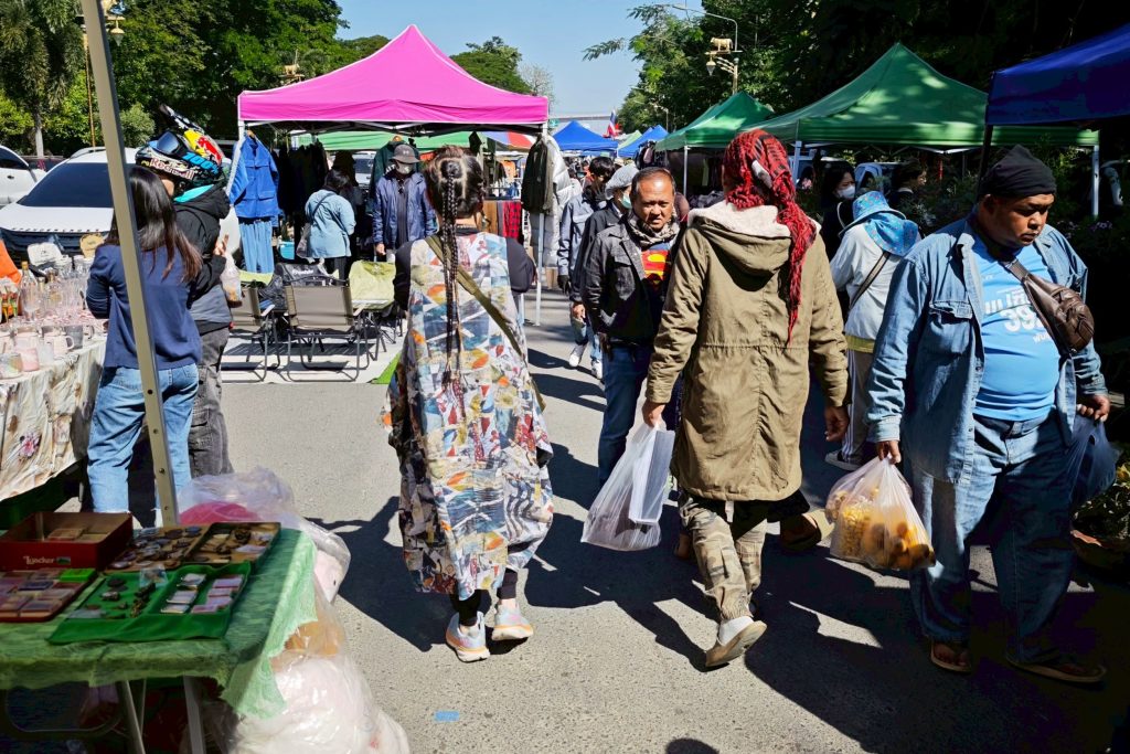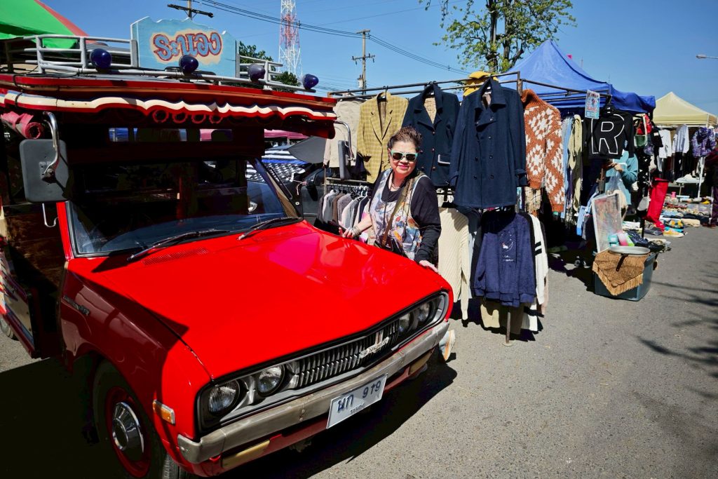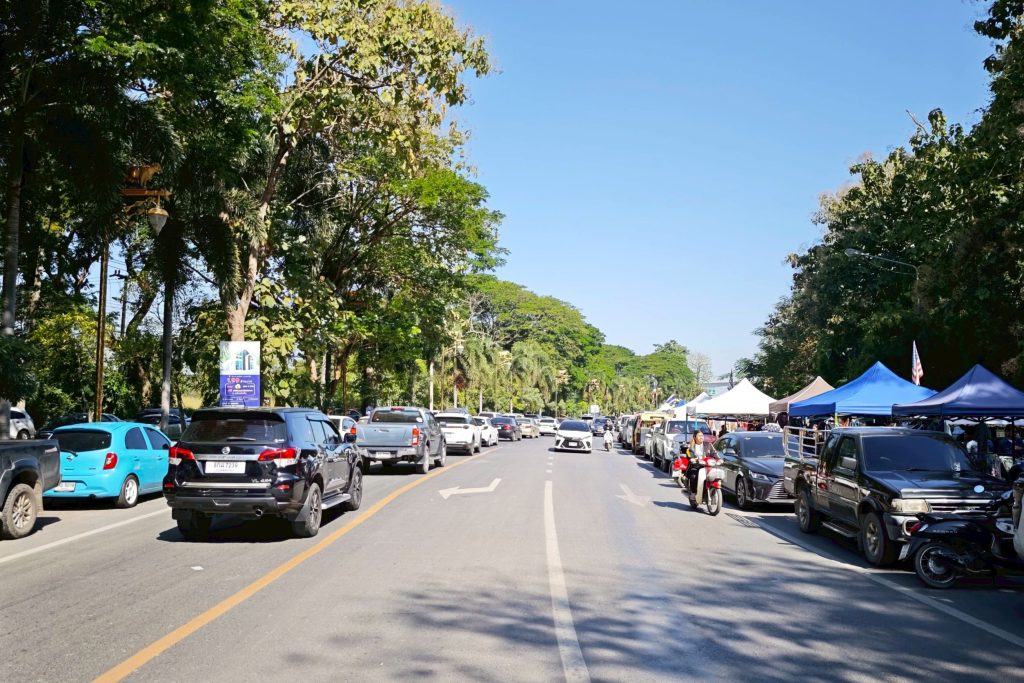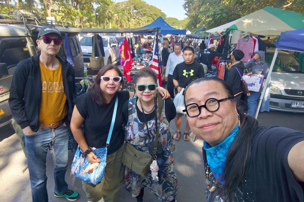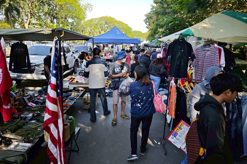 พวกเราก็เริ่มเดินกันตั้งแต่หัวมุมของตลาด ซึ่งตลาดก็จะอยู่ทางด้านขวา ก็ใช้พื้นที่ประมาณ 2 เลนของถนน ยังคงเหลืออีกสองเลนให้รถได้สัญจรไปมา ร้านแรกๆ ก็ไม่ค่อยมีของที่เราชอบมากนัก ส่วนมากก็จะเป็นจำพวกเสื้อผ้าและอุปกรณ์ทำการเกษตร เดินดูของไปได้สักระยะก็จะเริ่มมีของที่หลากหลายมากขึ้น ก็จำพวกของเก่าวินเทจมือสอง ก็มี แว่นตา กล้องถ่ายวิดีโอ ไอแพด หมวกกันน็อค และของอื่นๆ อีกหลายอย่าง ก็ประมาณว่าปนๆ กันไป
