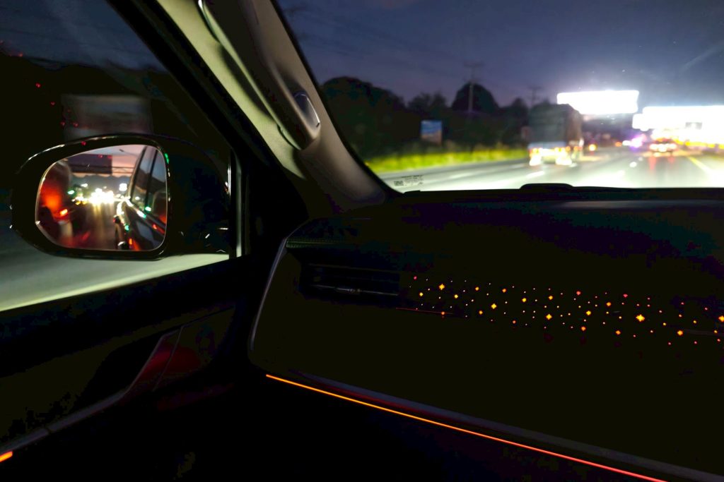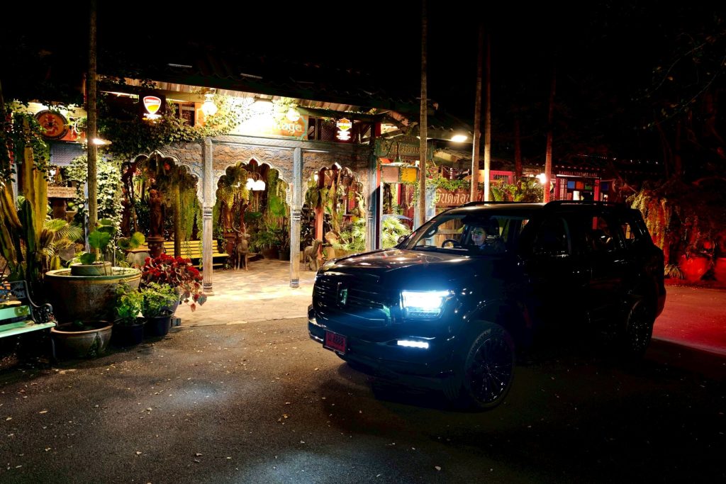 เดินทางจากกรุงเทพฯ ไปยังปากช่อง ใช้เวลาประมาณ 3 ชั่วโมง ด้วยระยะทางประมาณ 200 กิโลเมตร ก็ขับกันแบบสบายๆ ไปเรื่อยๆ แวะก็เข้าห้องน้ำและซื้อกาแฟ ถึงปากช่องก็เกือบๆ หนึ่งทุ่ม แสงสีจากภายในตัวรรถ บอกได้เลยว่า สวยและคลาสสิคมาก บริเวณคอนโซลด้านหน้าทางซ้ายจะมีไฟรูปดาวที่สามารถเปลี่ยนสีได้ และในส่วนของกล้อง 360 องศา มีมุมมองที่ดูง่ายและให้ภาพที่ชัดเจน และเราก็สามารถเลือกได้ว่าจะต้องการภาพแบบลายเส้น หรือภาพแบบมีตัวรถ สำหรับเรา เลือกใช้มุมมองแบบโชว์ตัวรถ มันทำให้ดูเข้าใจง่าย
