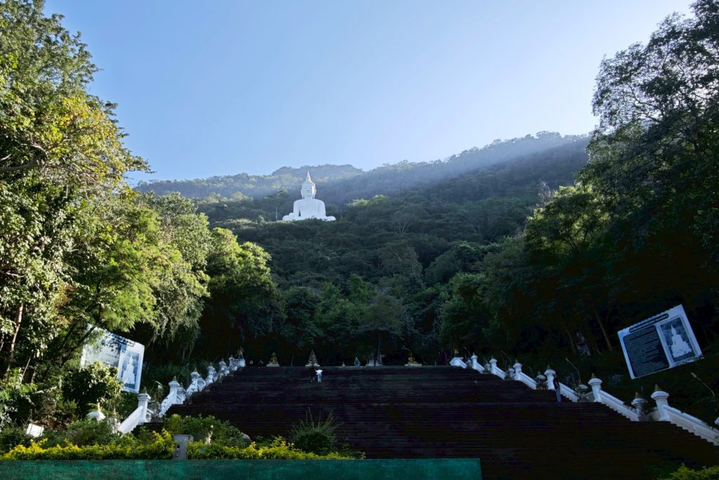 จริงๆ แล้วก็ต้องบอกก่อนว่า เมื่อหลายสิบปีผู้เขียนเองก็เคยขึ้นบันได 1,250 ขั้นไปไหว้องค์พระขาวมาแล้ว องค์ใหญ่มากๆ บอกเลย เมื่อยืนอยู่ด้านบนเราจะมองเห็นวิวทิวทัศน์สวยงามแบบ 180 องศา ยิ่งตอนเย็นๆ ใกล้ช่วงพระอาทิตย์ตกดินด้วยแล้ว บรรยากาศและแสงสีของท้องฟ้านัน้สวยงามมาก