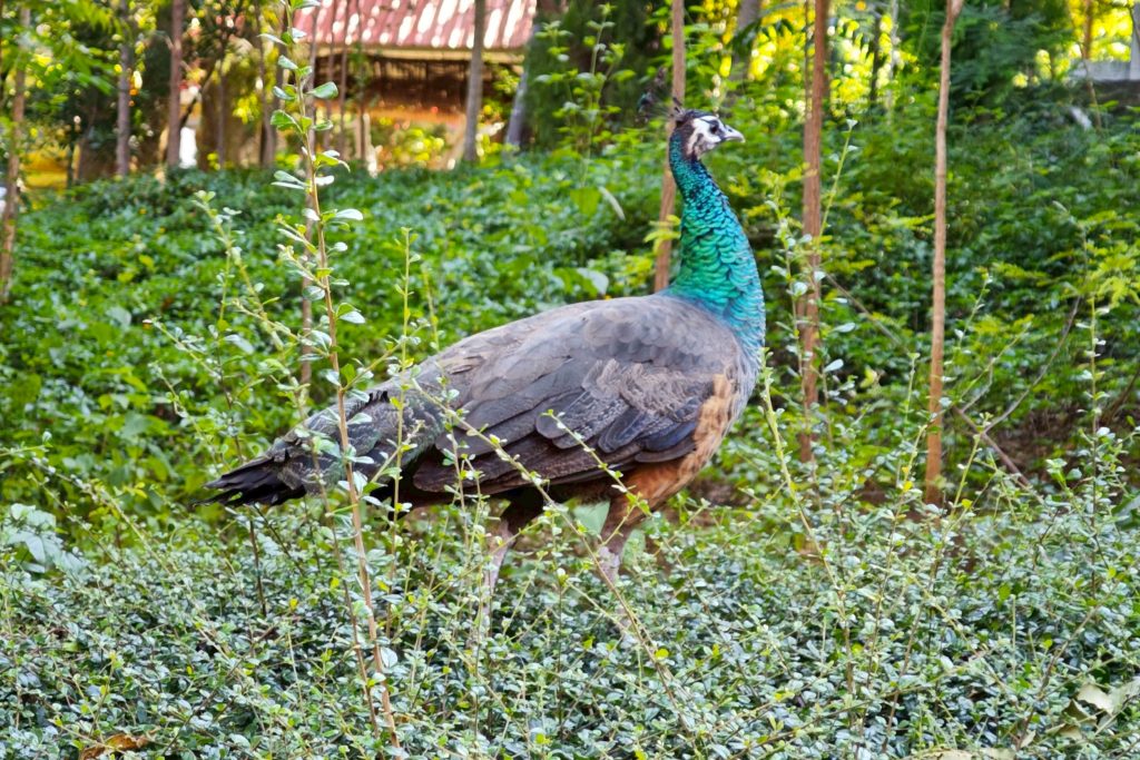 จิบกาแฟไปก็โปรยอาหารให้นกไป และเพลิดเพลินไปกับการบันทึกภาพกับนกยูงเพื่อเป็นที่ระลึก แหม!! ถ้าลำแพนหางสักหน่อยก็จะดี จะได้ภาพสวยๆ คิดว่ามันคงลำแพนหางไม่ได้แล้วมั้ง? อันนี้ผู้เขียนก็แอบคิดเอาเองนะ 5555+