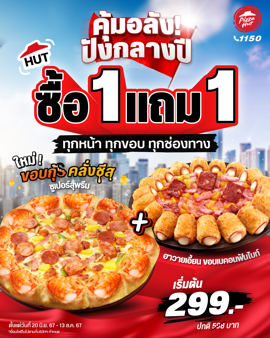 กรุงเทพมหานคร, 20 มิถุนายน 2567 – พิซซ่า ฮัท 1150 แบรนด์พิซซ่าระดับโลกภายใต้การบริหารงานของบริษัท พีเอช แคปปิตอล จำกัด จัดโปรพิเศษ “ซื้อ 1 แถม 1 ทุกหน้า ทุกขอบ ทุกช่องทาง มาพร้อมกับพิซซ่าขอบใหม่ ขอบกุ้งคลั่งชีส Limited Edition” ขอบแน่น กุ้งเน้น ชีสล้น แมตซ์ได้กับพิซซ่า ทุกหน้า ทุกขอบ ไม่ว่าจะเป็นหมวดซีฟู้ด สุพรีม ดีลักซ์ เลิฟเวอร์ แบบว่าชาวพิซซ่าเลิฟเวอร์เตรียมคลั่งชีสยกก๊วนกันได้ไม่รู้จบ คุ้มอลัง ปังกลางปีแบบนี้ไม่มีอีกแล้ว 2 ถาด เริ่มต้น 299 บาท (ปกติ 598 บาท) ตั้งแต่วันที่ 20 มิถุนายน – 13 สิงหาคม 2567 เท่านั้น ทุกช่องทาง Pizza Hut ทุกสาขา, โทร 1150, แอป Pizza Hut และผ่านเว็บไซต์ www.pizzahut .co.th ถึงวันที่ 30 มิถุนายน 2567