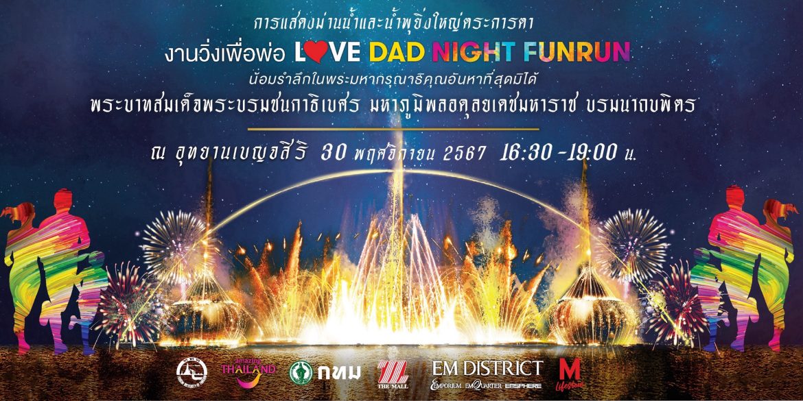 เพื่อน้อมรำลึก ในพระมหากรุณาธิคุณ ในหลวงรัชกาลที่ 9 รวมถึงเพื่อส่งเสริมความรัก ความสามัคคีของสถาบันครอบครัว และการออกกำลังกายเพื่อสุขภาพ เนื่องในวันพ่อแห่งชาติ และเพื่อขานรับนโยบาย “COLORFUL BANGKOK 2024” ของกรุงเทพมหานคร เพื่อให้กรุงเทพมหานครเป็นจุดหมายปลายทางของนักท่องเที่ยวจากทั่วทุกมุมโลก ภาครัฐ ได้แก่ การท่องเที่ยวแห่งประเทศไทย และกรุงเทพมหานคร พร้อมด้วยภาคีเครือข่ายภาคเอกชน นำโดย บริษัทเดอะมอลล์ กรุ๊ป, เอ็มดิสทริค จัดการแสดงม่านน้ำเฉลิมพระเกียรติ และกิจกรรมวิ่งเพื่อพ่อ “เลิฟ แด๊ด ไนท์ ฟัน รัน” (LOVE DAD NIGHT FUN RUN) ชวนชาวกรุงเทพฯ มาร่วมกิจกรรมสร้างสีสันยามค่ำคืนให้ย่านสุขุมวิท และกรุงเทพมหานครเป็นเมืองที่ไม่หลับใหล ภายในอุทยาน เบญจสิริ ในวันเสาร์ที่ 30 พฤศจิกายน 2567 ณ อุทยานเบญจสิริ ถนนสุขุมวิท โดยกิจกรรมเริ่มตั้งแต่เวลา 16.30 น. – 19.30 น.