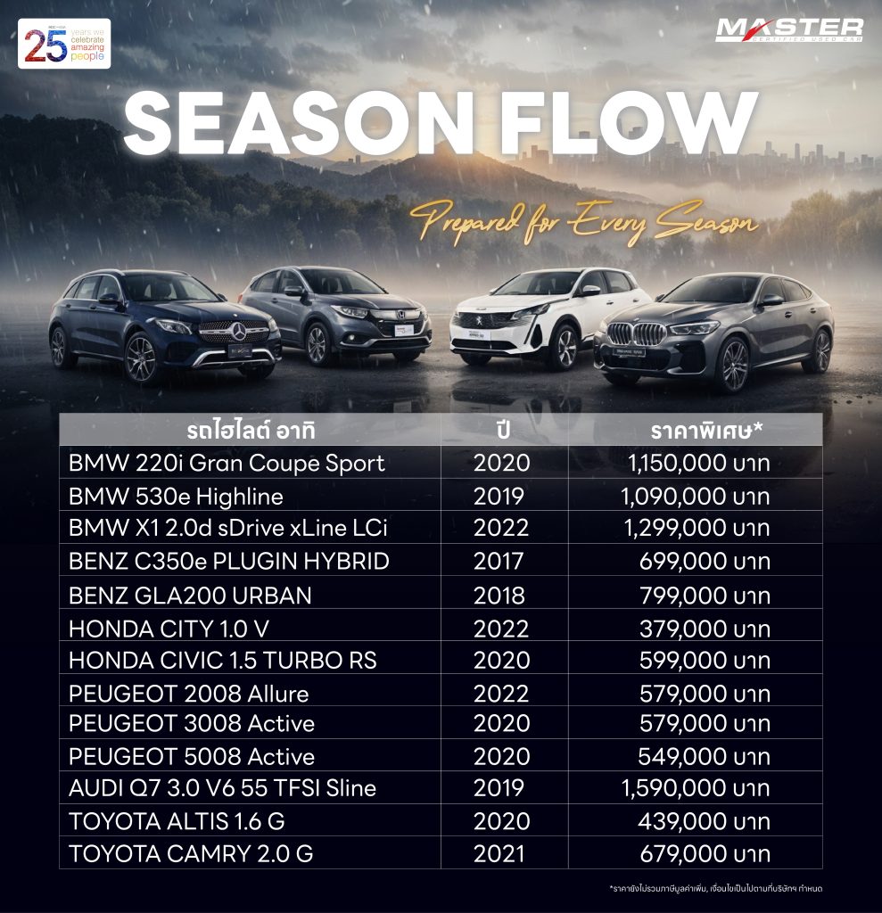 มั่นใจทุกการเดินทาง! มาสเตอร์ เซอร์ทิฟายด์ ยูสคาร์ ชูแคมเปญ ‘SEASON FLOW’ ยกทัพรถมือสองพรีเมียม กว่า 300 คัน จัดแสดงพร้อมจำหน่าย ดอกเบี้ยต่ำสุด 0% พร้อมสิทธิพิเศษ ตลอดเดือนตุลาคม 2568