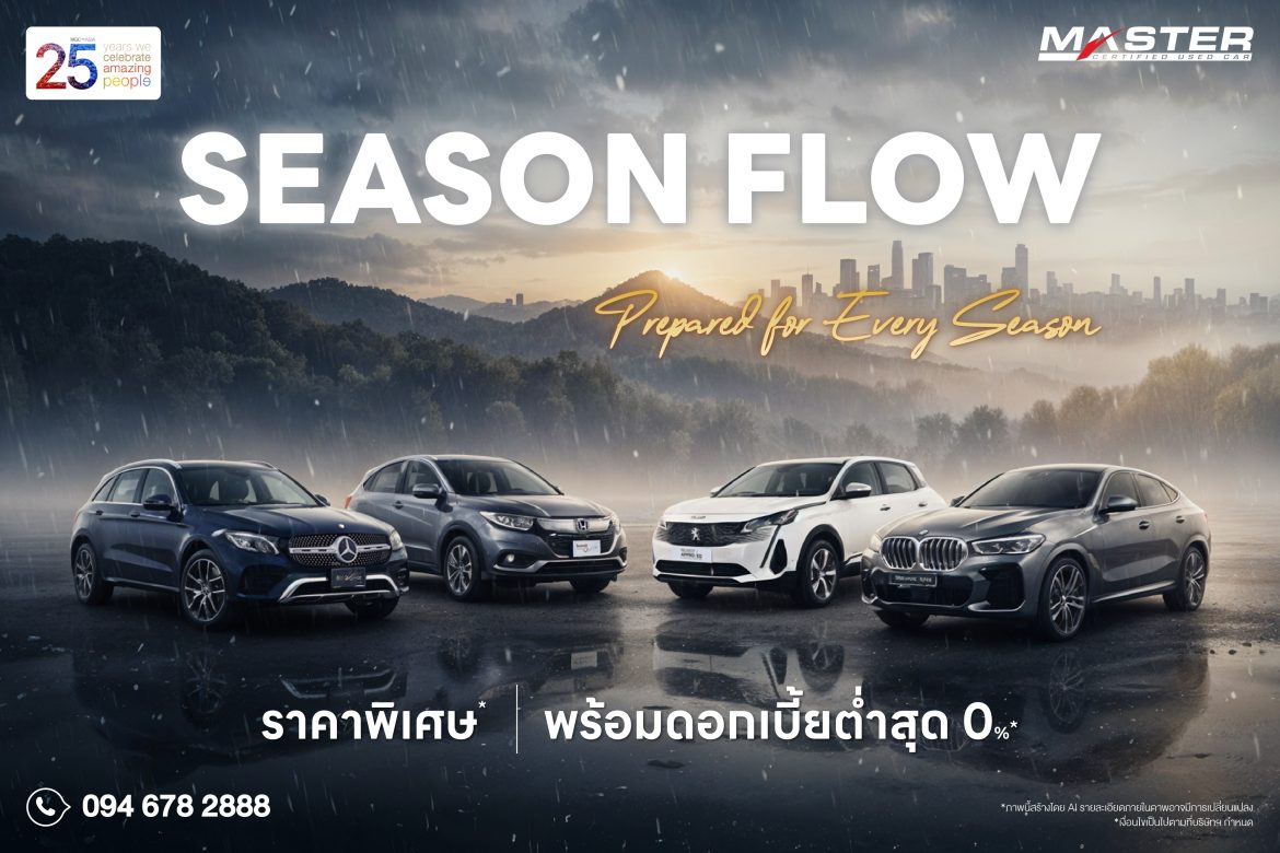มาสเตอร์ เซอร์ทิฟายด์ ยูสคาร์ ศูนย์รวมรถยนต์มือสองครบวงจร ภายใต้บริษัท มิลเลนเนียม กรุ๊ป คอร์ปอเรชั่น (เอเชีย) จำกัด (มหาชน) พร้อมด้วย BMW Certified Used Car by Millennium Auto, Benz Certified Used Car, และ Summit Honda Certified Used Car คัดสรรยนตรกรรมมือสองระดับพรีเมียม พร้อมกันทั้ง 10 โชว์รูม รวมกว่า 300 คัน มอบความมั่นใจทุกการเดินทาง ภายใต้แคมเปญ ‘SEASON FLOW’ ตลอดเดือนตุลาคม 2568