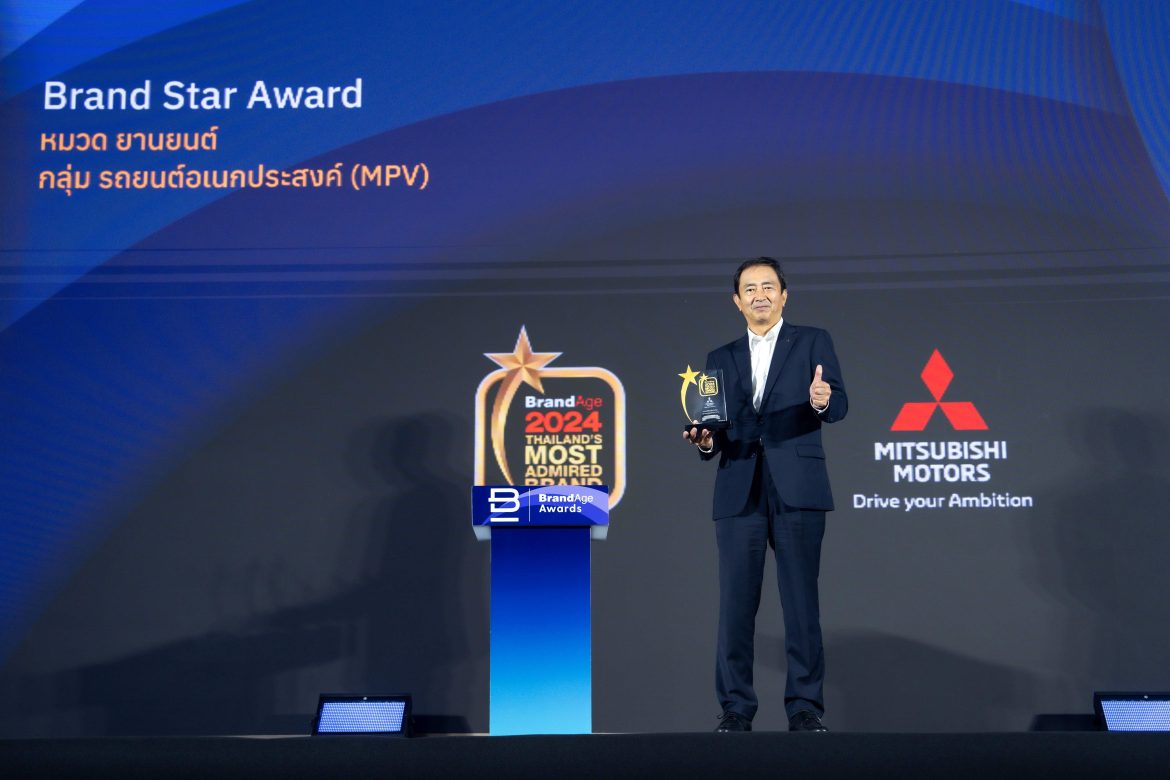มิตซูบิชิ มอเตอร์ส คว้ารางวัลแบรนด์ที่มีความน่าเชื่อถือและไว้วางใจสูงสุดจากผู้บริโภคในหมวดยานยนต์ กลุ่มรถยนต์อเนกประสงค์ (MPV) พร้อมรับรางวัลพิเศษ Brand Star Award จากผลสำรวจ 2024 Thailand’s Most Admired Brand โดย BrandAge ซึ่งเป็นนิตยสารและสื่อออนไลน์ชั้นนำ ทางด้านการตลาดและธุรกิจ โดยรางวัลนี้สะท้อนถึงความสำเร็จและคุณภาพอันยอดเยี่ยมของ มิตซูบิชิ เอ็กซ์แพนเดอร์ และ มิตซูบิชิ เอ็กซ์แพนเดอร์ ครอส ซึ่งเป็นผู้นำตลาดเอ็มพีวี ในประเทศไทยมาอย่างต่อเนื่อง