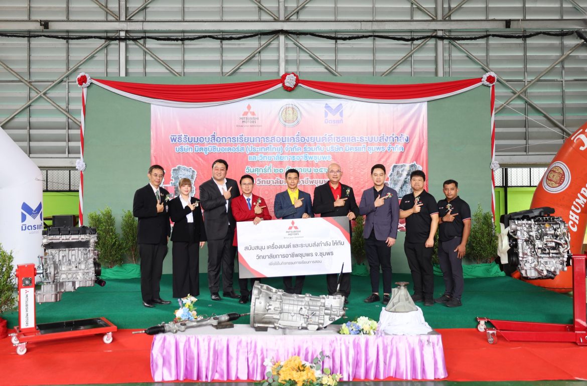 บริษัท มิตซูบิชิ มอเตอร์ส (ประเทศไทย) จำกัด สานต่อความมุ่งมั่นส่งเสริมการศึกษาไทยเพื่อพัฒนาทักษะบุคลากรในอุตสาหกรรมยานยนต์ ด้วยการมอบเครื่องยนต์และชุดส่งกำลัง ให้แก่วิทยาลัยการอาชีพชุมพร ประกอบด้วย ชุดเครื่องยนต์ 4N16 รุ่นใหม่ล่าสุดที่ติดตั้งในมิตซูบิชิ ไทรทัน เครื่องยนต์ 4N15 ชุดเกียร์ธรรมดา รุ่น R6M5A เฟืองท้าย และ ชุดแร็คพวงมาลัยเพาเวอร์ ซึ่งจะใช้เป็นสื่อการเรียนการสอนเพื่อยกระดับความรู้ความสามารถของนักเรียน เพื่อให้ก้าวทันต่อการเปลี่ยนแปลงของเทคโนโลยียานยนต์สมัยใหม่ เพิ่มโอกาสในการจ้างงานและความก้าวหน้าในสายอาชีพ