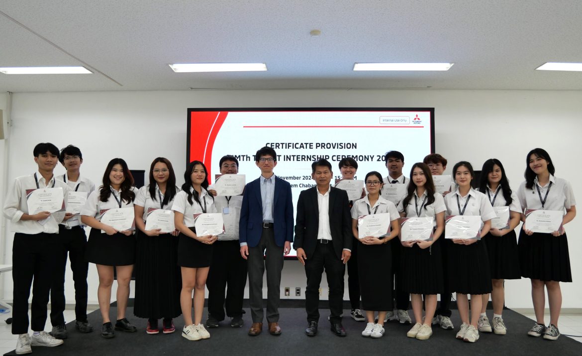 บริษัท มิตซูบิชิ มอเตอร์ส (ประเทศไทย) จำกัด มอบรางวัลให้แก่ผู้ชนะการประกวดโครงการฝึกงานยอดเยี่ยม (Top 5 Internship Project Award) พร้อมมอบประกาศนียบัตรให้แก่นักศึกษาที่สำเร็จหลักสูตรฝึกงานจากโครงการ ‘MMTh Talent Internship Program’ ครั้งที่ 6 ประจำปี 2567 โดยโครงการนี้เปิดโอกาสให้นักศึกษาริเริ่มและสร้างสรรค์โครงการที่สนับสนุนการพัฒนาการดำเนินงานของบริษัทสู่ความเป็นเลิศ เพื่อให้นักศึกษาได้มีโอกาสนำความรู้เชิงทฤษฎีมาปรับใช้กับการทำงานจริง ทั้งยังส่งเสริมการเรียนรู้อย่างเต็มรูปแบบนอกห้องเรียน อีกทั้งเตรียมความพร้อมสำหรับการประกอบอาชีพในอนาคต