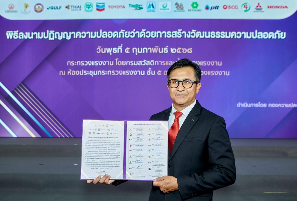 บริษัท มิตซูบิชิ มอเตอร์ส (ประเทศไทย) จำกัด ร่วมลงนามในปฏิญญาความปลอดภัยว่าด้วยการสร้างวัฒนธรรมความปลอดภัยร่วมกับกระทรวงแรงงาน ถือเป็นก้าวสำคัญในการส่งเสริมวัฒนธรรมความปลอดภัยในสถานประกอบกิจการในประเทศไทย โดยความร่วมมือในครั้งนี้สะท้อนถึงความมุ่งมั่นในการดำเนินงานด้วยมาตรฐานความปลอดภัยสูงสุด พร้อมทั้งสนับสนุนภารกิจของกระทรวงแรงงานในการยกระดับมาตรฐานด้านความปลอดภัยของภาคอุตสาหกรรมในประเทศไทย