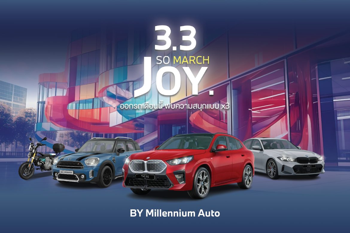 มิลเลนเนียม ออโต้ กรุ๊ป จัดกิจกรรม ‘SO MARCH JOY’ ออกรถเดือนนี้ รับฟรีความสนุกคูณสาม ผสานแคมเปญพิเศษจาก BMW, MINI และ BMW MOTORRAD พร้อมสัมผัสรถยนต์ไฟฟ้ารุ่นล่าสุด ‘The First-Ever BMW i2’