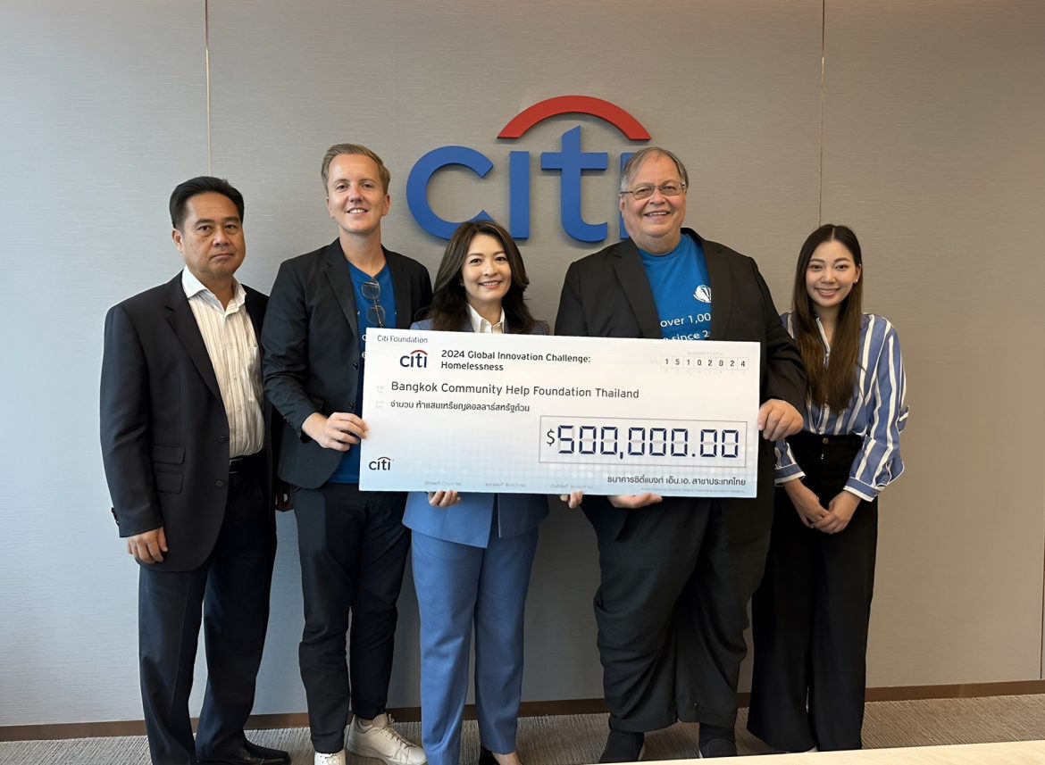 มูลนิธิซิตี้ (Citi Foundation) จัดโครงการ Global Innovation Challenge 2024 มอบเงิน 25 ล้านดอลลาร์สหรัฐให้องค์กรไม่แสวงหาผลกำไร 50 แห่ง ทั่วโลก จัดทำโครงการแก้ไขปัญหาความมั่นคงทางที่อยู่อาศัยและคนไร้บ้าน สำหรับประเทศไทย มูลนิธิซิตี้ได้บริจาคเงิน 5 แสนเหรียญสหรัฐ หรือราว 16.5 ล้านบาท ให้ มูลนิธิ บางกอก คอมมูนิตี้ เฮลป์ (Bangkok Community Help Foundation) จัดตั้งศูนย์พักพิงสำหรับคนเร่ร่อนและคนจากชุมชนด้อยโอกาสในเขตคลองเตย รวมถึงมีการให้บริการที่ปรึกษาสุขภาพจิต ตลอดจนให้การสนับสนุนด้านการฝึกอบรมและจัดหาอาชีพ เพื่อแก้ไขปัญหาคนไร้บ้านในประเทศไทยอย่างยั่งยืน