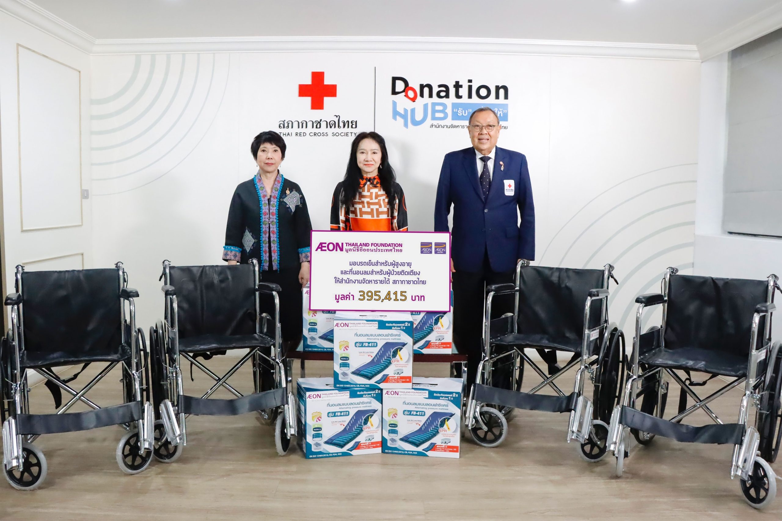 มูลนิธิอิออนประเทศไทย สร้างเสริมคุณภาพชีวิตของผู้สูงอายุและผู้ป่วยติดเตียง มอบรถเข็นและที่นอนลม แก่สำนักงานจัดหารายได้ สภากาชาดไทย