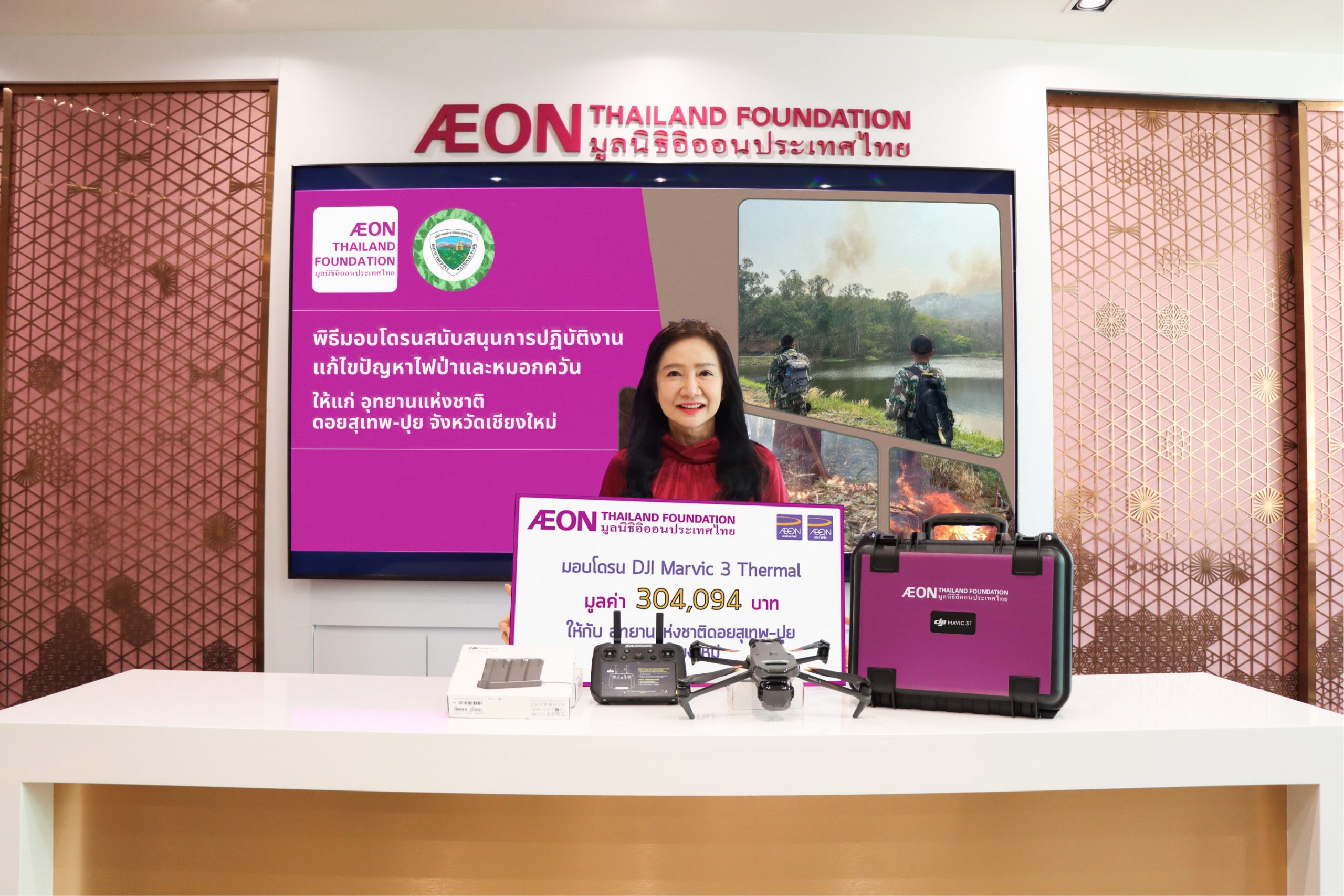 มูลนิธิอิออนประเทศไทย โดยนางสุพร วัธนเวคิน ประธานมูลนิธิอิออนประเทศไทย มอบโดรน DJI Marvic 3 Thermal พร้อมอุปกรณ์เซ็นเซอร์ในการถ่ายภาพและตรวจจับความร้อน และแบตเตอรี่สำรอง รวมมูลค่า 304,094 บาท แก่อุทยานแห่งชาติดอยสุเทพ-ปุย จ.เชียงใหม่ เพื่อสนับสนุนโครงการจัดหาอุปกรณ์และอากาศยานไร้คนขับ (UVA) ในการรับมือกับปัญหาไฟป่าและหมอกควันในเขตพื้นที่อุทยานแห่งชาติดอยสุเทพ-ปุย โดยการสนับสนุนอุปกรณ์ดังกล่าวจะช่วยอำนวยความสะดวกด้านการปฏิบัติงานของเจ้าหน้าที่ในการป้องกันการเกิดไฟป่า อันเป็นสาเหตุของปัญหาฝุ่นมลพิษ PM 2.5 ที่ส่งผลกระทบต่อสุขภาพและการดำเนินชีวิตของประชาชนในเขตเมืองเชียงใหม่ และพื้นที่ใกล้เคียงให้มีประสิทธิภาพและรวดเร็วยิ่งขึ้น สอดคล้องกับพันธกิจของมูลนิธิอิออนประเทศไทย ที่มุ่งมั่นส่งเสริมและยกระดับคุณภาพชีวิตที่ดีให้แก่ผู้คนในสังคมไทยในด้านสุขภาพ การศึกษา และการอนุรักษ์ธรรมชาติและสิ่งแวดล้อมให้มีความยั่งยืน ผ่านการสนับสนุนทั้งด้านการเงินและสิ่งของจำเป็น