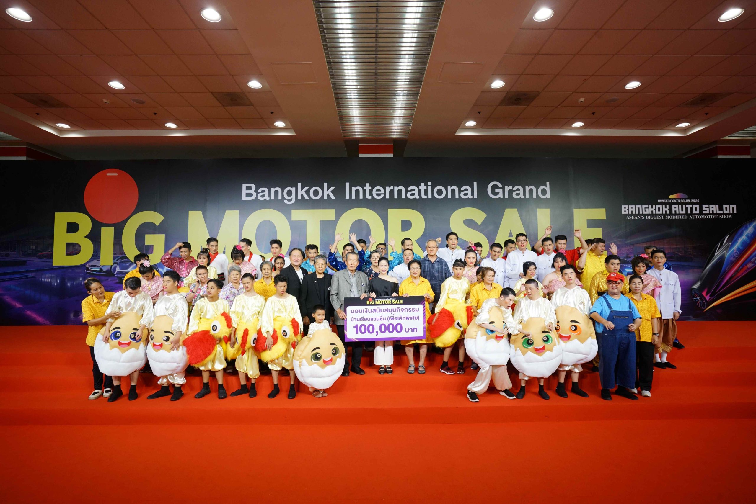 คุณจิตต์จรวย ขันมณี รองประธานกรรมการบริหาร บริษัท ยานยนต์สแควร์ กรุ๊ป จำกัด ผู้แทนของคุณมนต์สวรรค์ ขันมณี ประธานใหญ่การจัดงาน “BIG MOTOR SALE 2025” มอบเงินสนับสนุน 100,000 บาท แก่ ดร.ธมล เสรีวงศ์ ประธานมูลนิธิเพื่อการพัฒนาเด็กที่มีความต้องการพิเศษ เพื่อนำไปใช้ในกิจกรรมเสริมสร้างพัฒนาการของน้องๆ บ้านเรียนชวนชื่น (เพื่อเด็กพิเศษ) ณ ศูนย์นิทรรศการและการประชุมไบเทค บางนา พรุ่งนี้วันสุดท้ายของงานแล้ว เชิญชวนผู้ใหญ่ใจดีช้อปสินค้าน่ารักน่าใช้จาก “ร้านค้าเปื้อนยิ้ม” ของน้องๆ บ้านเรียนชวนชื่น ที่หน้าฮอลล์ 101 งาน BIG MOTOR SALE 2025