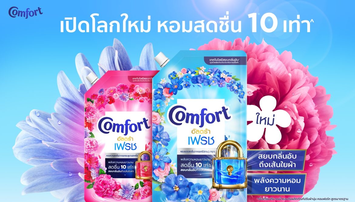 ยูนิลีเวอร์ องค์กรชั้นนำที่ให้ความสำคัญกับการสร้างความเปลี่ยนแปลงเชิงบวกอย่างยั่งยืน เดินหน้าตอกย้ำความเป็นผู้นำด้านนวัตกรรมผลิตภัณฑ์ที่เน้นผู้บริโภคเป็นศูนย์กลางด้วยการขยายพอร์ตโฟลิโอนวัตกรรมผลิตภัณฑ์ในครัวเรือน ผ่านแบรนด์ “คอมฟอร์ท” ผู้บุกเบิกตลาดผลิตภัณฑ์ปรับผ้านุ่มของโลก เปิดตัว “คอมฟอร์ท อัลตร้า เฟรช” (COMFORT ULTRA FRESH) น้ำยาปรับผ้านุ่มสูตรใหม่ล่าสุดที่ถูกพัฒนาขึ้นเพื่อตอบโจทย์ความต้องการผลิตภัณฑ์ทำความสะอาดและถนอมผ้าที่มาพร้อมคุณสมบัติสยบกลิ่นอับ กำจัดกลิ่นเหงื่อโดยเฉพาะ ด้วยเทคโนโลยีน้ำหอมใหม่ ที่ขจัดกลิ่นไม่พึงประสงค์บนใยผ้าขณะสวมใส่อย่างมีประสิทธิภาพ พร้อมกับระเบิดความหอมสดชื่น 10 เท่า เพื่อผู้ต้องทำงานหรือทำกิจกรรมกลางแจ้งตลอดวัน เผชิญมลภาวะระหว่างวันเป็นประจำ รวมไปถึงถึงผู้ที่ต้องสวมใส่ชุดเดิมเป็นเวลานาน ซึ่งจะมีความกังวลเรื่องกลิ่นเหม็นอับและกลิ่นไม่พึงประสงค์จากเหงื่อ ฝุ่น หรือมลภาวะ เพิ่มความมั่นใจในทุกชุดที่สวมใส่ ให้ใช้ชีวิตและทำกิจกรรมในระหว่างวันได้อย่างเต็มร้อย สะท้อนความมุ่งมั่นของคอมฟอร์ทในฐานะผู้นำด้านผลิตภัณฑ์ปรับผ้านุ่มที่อยู่คู่ประเทศไทยมาอย่างยาวนาน และไม่เคยหยุดยั้งที่จะพัฒนานวัตกรรมใหม่ๆ เพื่อยกระดับคุณภาพชีวิตคนในสังคมไทยอย่างยั่งยืน