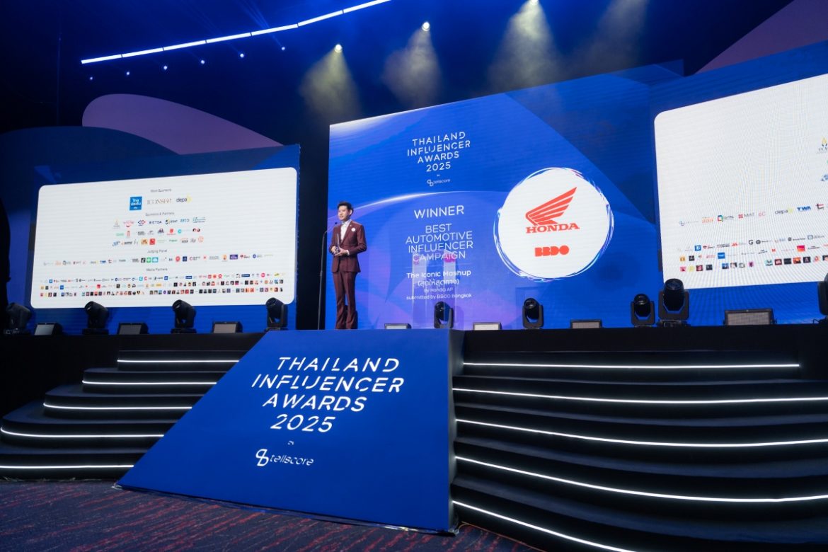 รถจักรยานยนต์ฮอนด้า คว้ารางวัลชนะเลิศอันดับ 1 ในสาขา“Best Automotive Influencer Campaign” จากเวที Thailand Influencer Awards 2025 โดย บริษัท เทลสกอร์ จำกัด (Tellscore) ภายใต้ธีม “Creators of Change – ครีเอเตอร์เปลี่ยนโลกพารอด” ซึ่งจัดขึ้น ณ ICONSIAM – TRUE ICON HALL ชั้น 7 เมื่อเร็ว ๆ นี้