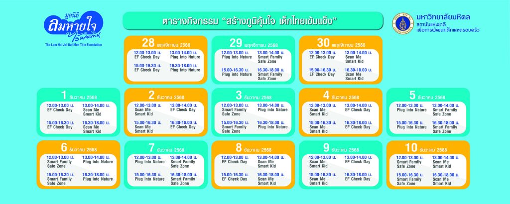 มูลนิธิลมหายใจไร้มลทิน ร่วมกับ สถาบันแห่งชาติเพื่อการพัฒนาเด็กและครอบครัว ม.มหิดล เชิญชวนทุกครอบครัว “สร้างภูมิคุ้มกันใจ เด็กไทยเข้มแข็ง” ภายใต้แนวคิด “Inner Growth Playground: Smart Mind – Safe Heart – Nature Balance”