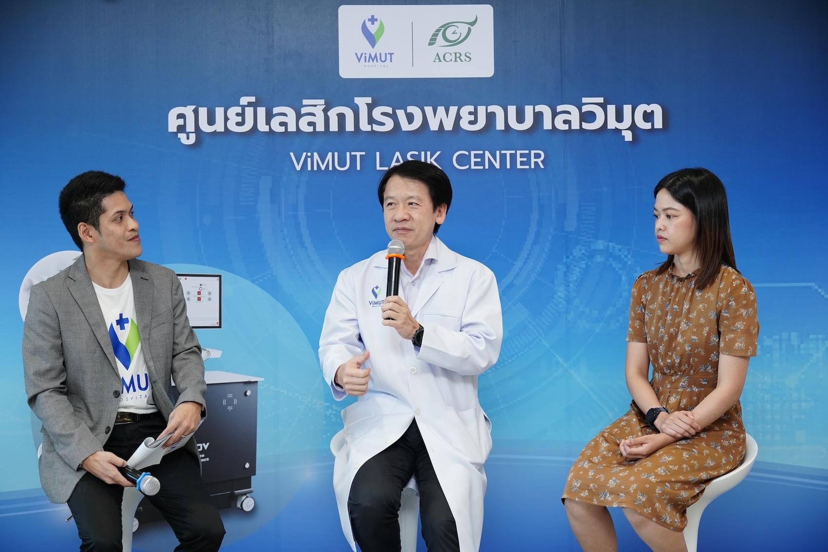 โรงพยาบาลวิมุต โรงพยาบาลเอกชนชั้นนำใจกลางกรุงเทพฯ รุกธุรกิจเลสิกเต็มรูปแบบ เดินหน้าเปิด “ศูนย์เลสิก โรงพยาบาลวิมุต (ViMUT LASIK Center)” ชูนวัตกรรมที่ปลอดภัย ลดภาวะแทรกซ้อนที่ทำให้การทำเลสิกไม่น่ากลัวอีกต่อไป ภายใต้คอนเซปต์ “ทำวันนี้ ชัดพรุ่งนี้” ชวนผู้มีปัญหาสายตาเปลี่ยนโลกการมองเห็นให้คมชัดเพื่อการใช้ชีวิตแบบไร้กรอบได้อย่างเต็มที่ด้วยนวัตกรรมเครื่อง “FEMTO LDV Z8” เพื่อการผ่าตัดรักษาค่าสายตาและการผ่าตัดต้อกระจกด้วยเลเซอร์แบบไร้ใบมีดที่ฟื้นตัวไว รพ. วิมุต ชี้เทรนด์ดูแลสุขภาพตาและวงการเลสิกทั่วโลกโตพุ่งต่อเนื่องตามพฤติกรรมคนรุ่นใหม่ที่ต้องใช้หน้าจอตลอดวัน ทั้งเรียนหนังสือ ทำงาน ติดต่อสื่อสาร และเสพความบันเทิง สอดรับกับการคาดการณ์ขององค์กรอนามัยโลก (WHO) ว่าภายในปี 2050 ประชากรครึ่งโลกจะมีปัญหาสายตาสั้น โดย รพ. วิมุต เดินหน้าเปิดศูนย์เฉพาะทางที่เพียบพร้อมด้วยนวัตกรรมสมัยใหม่ระดับโลกและทีมแพทย์ผู้ชำนาญการจากหลากหลายสาขา ภายใต้วิสัยทัศน์ที่ยกระดับการดูแลสุขภาพแบบองค์รวม (Holistic Healthcare) พร้อมสร้างเสริมสุขภาพที่ดีให้แก่ผู้ใช้บริการอย่างครอบคลุมตั้งแต่การป้องกัน รักษา และฟื้นฟู คาดหลังเปิดศูนย์เลสิกเต็มรูปแบบจะมีผู้ใช้บริการจำนวนมาก รพ. วิมุต หวังมอบการรักษาดวงตาด้วยวิธีที่ปลอดภัยแบบยั่งยืนเพื่อให้คนไทยใช้ชีวิตยุคใหม่ใกล้หน้าจอได้อย่างมีประสิทธิภาพ