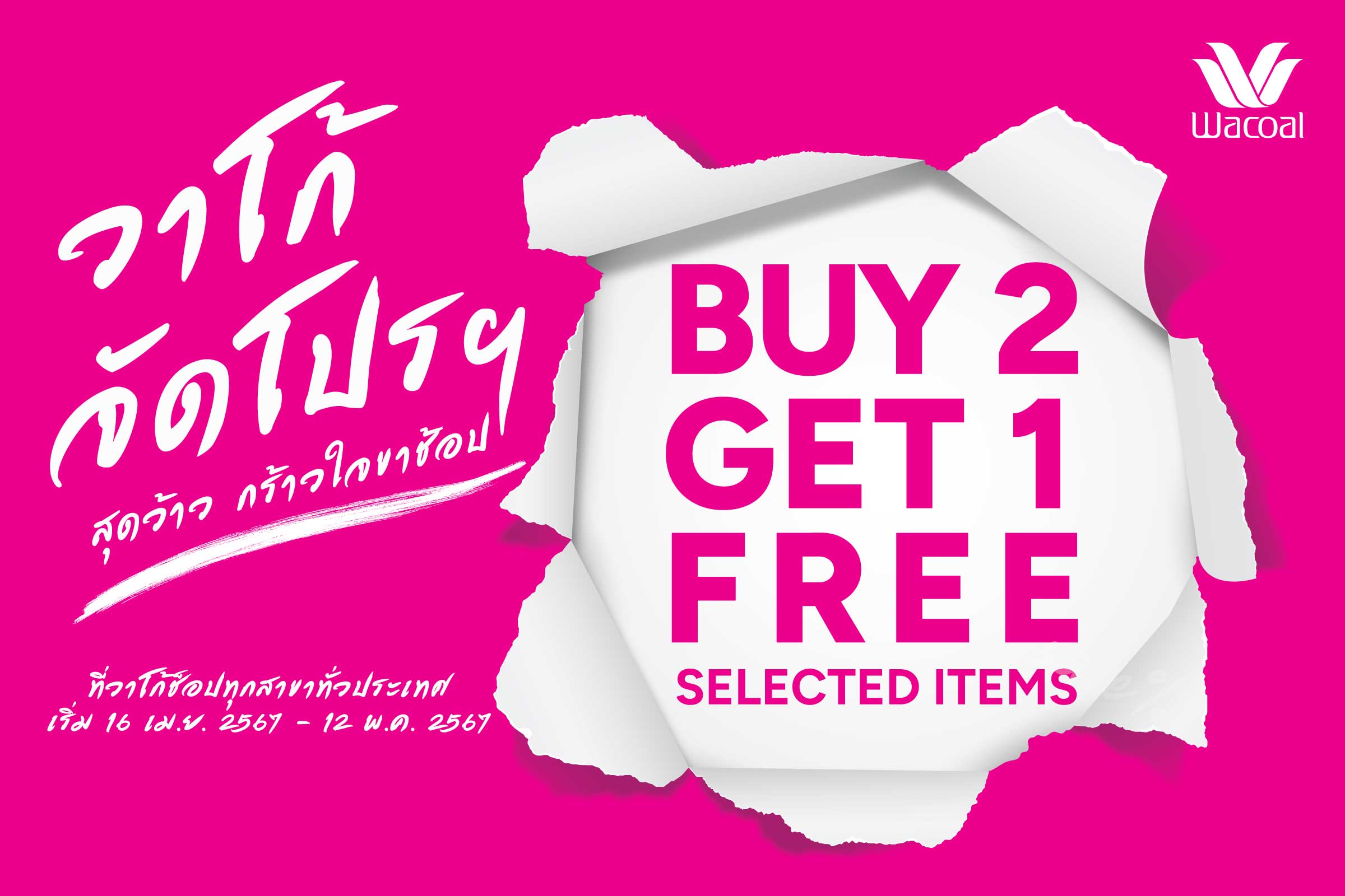 วาโก้ จัดโปรฯ สุดว้าว กร้าวใจขาช้อป ซื้อ 2 แถม 1 จึ้งๆ กันไปเลย เริ่ม 16 เม.ย. 67 – 12 พ.ค. 67 เท่านั้น ที่วาโก้ช็อป ทุกสาขาทั่วประเทศ