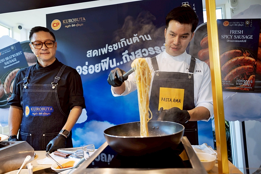 ขณะที่ เชฟพฤกษ์ สัมพันธวรบุตร เชฟกระทะเหล็กประเทศไทย และผู้ร่วมพัฒนาสูตร เสริมว่า ไส้กรอกสดหมูดำ ซีพี-คูโรบูตะ ผลิตจากหมูดำคูโรบูตะสายพันธุ์พิเศษจากญี่ปุ่น ผ่านกระบวนการผลิตอย่างพิถีพิถัน ใช้เนื้อหมูบดหยาบ คลุกเคล้ากับเครื่องปรุงสูตรเฉพาะ และบรรจุในไส้แกะแบบดั้งเดิม เพื่อให้ได้รสสัมผัสที่แน่น ฉ่ำ และหอมละมุนในทุกคำ